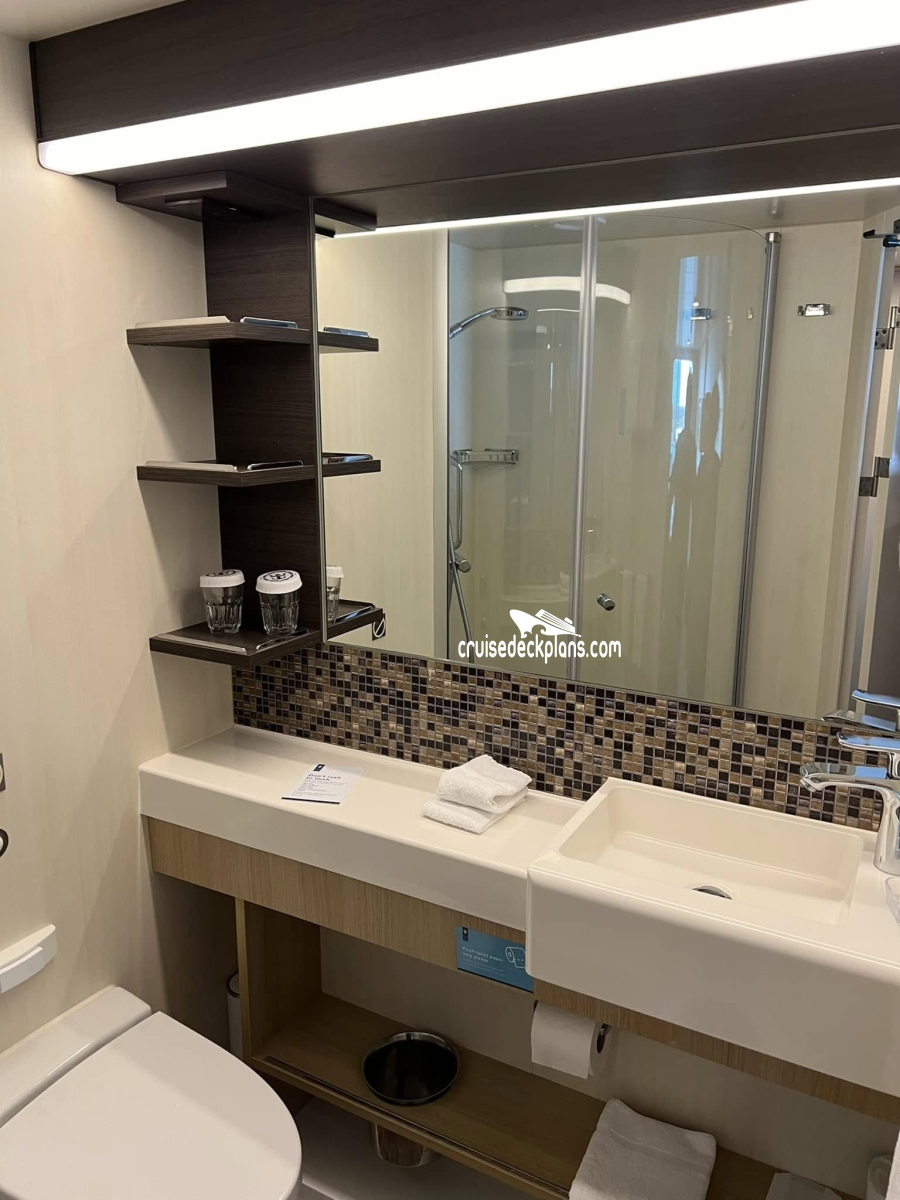 Dimensions vary: Deck 8- (740 sq. ft., balcony 183 sq. ft.); Deck 10- (673 sq. ft., balcony 183 sq. ft.)Stateroom Cabin Perks