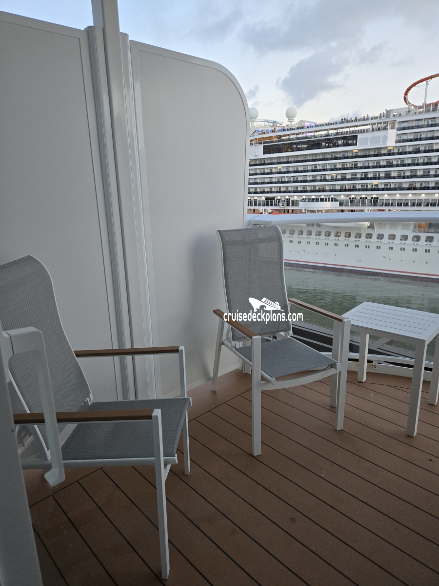 - Havana Cabana Suites (HS) feature patio chairs, hammock chair, table (the patio is elevated 4 steps down to the outer deck).