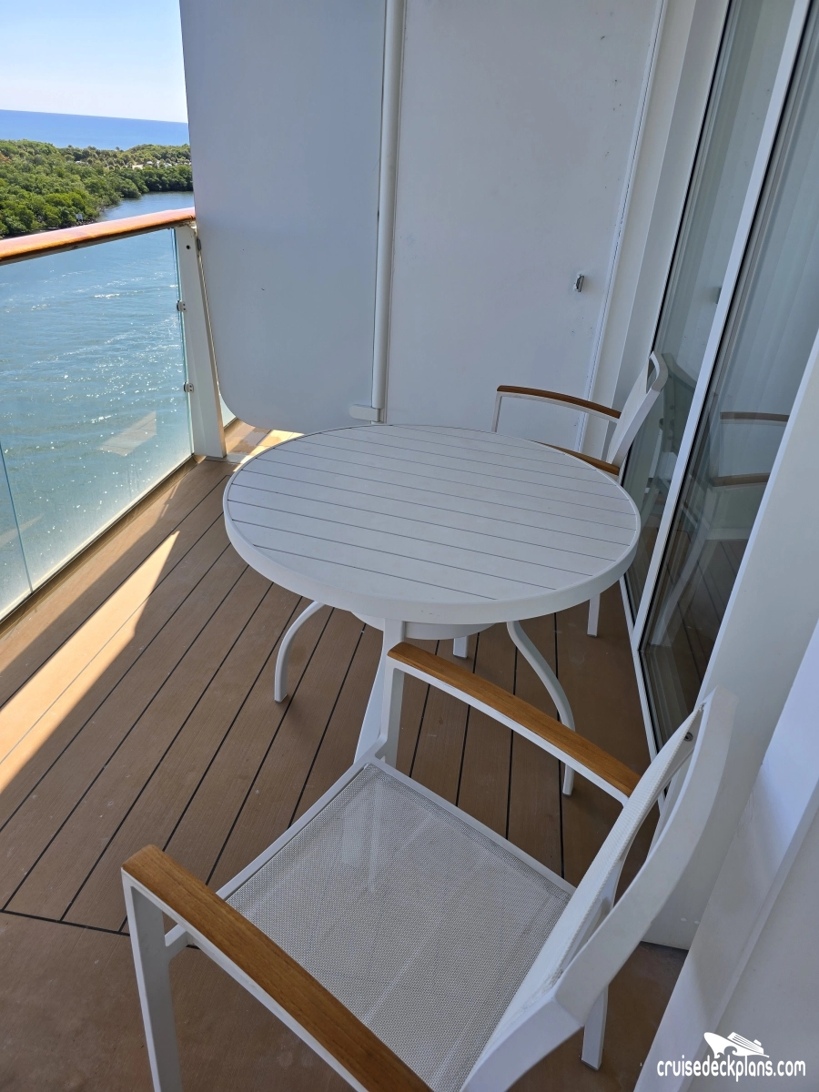 Verandah size ranges from 53 to 105 square feet. Balconies are somewhat tight, with the larger size balcony on deck 8.Stateroom Cabin Perks