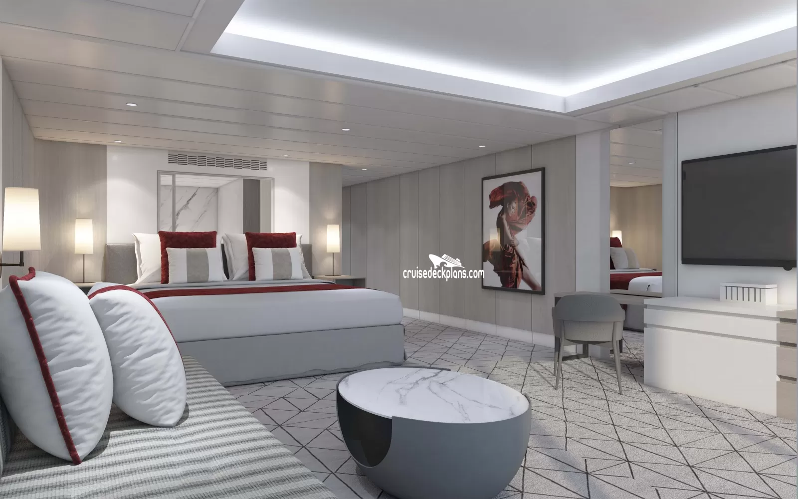 - Two entertainment centers with Interactive flat-screen tv (order excursions, room service, watch movies)