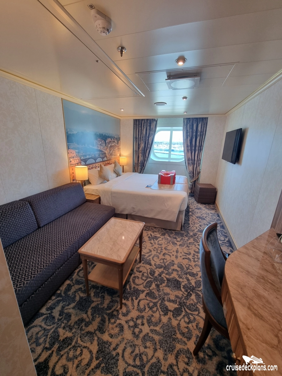 Costa divides cabins into 4 different categories. Classic cabins offer the most affordable prices. Premium cabins include free continental breakfast in your cabin, free 24-hour room service, 10% off your next cruise. Samsara cabins include the benefits of Premium cabins plus have direct access to the spa, including bathrobes and slippers. Suites offer all the Premium cabin benefits plus more perks (described in other section).
