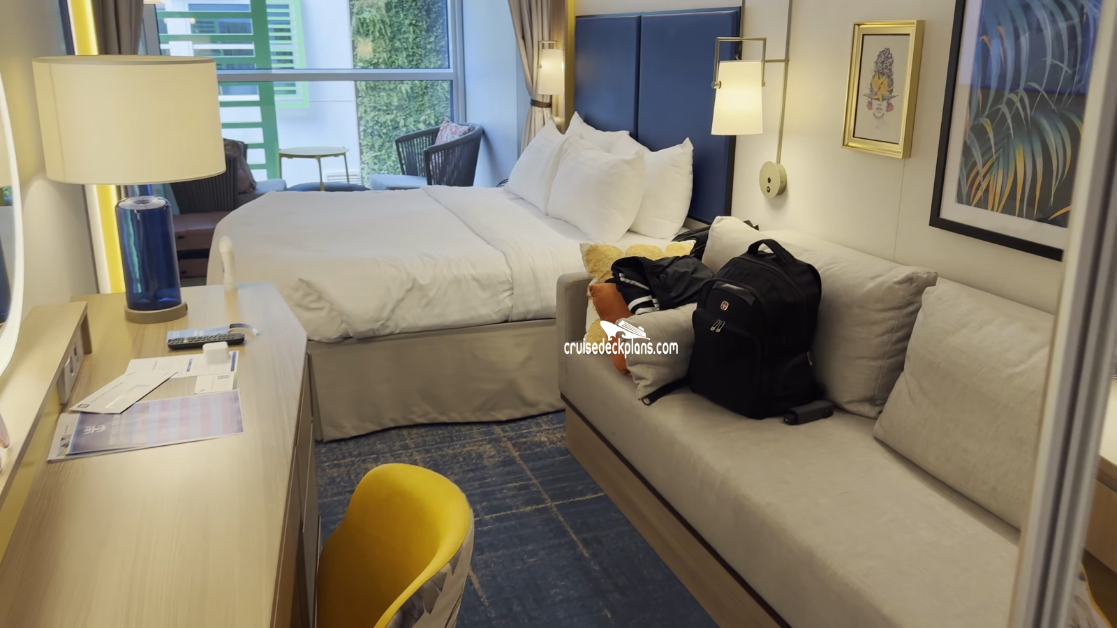 - Convertible Balcony: 50 sq. ft.- Two twin beds that convert to Royal King