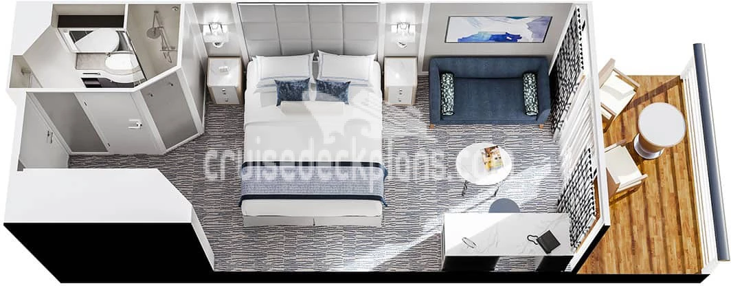 Category VS is 533 square feet with 253 square foot balcony.Stateroom Cabin Perks