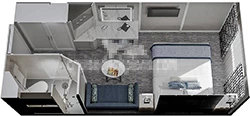 - Two Tranquility twin beds that convert to queen-size- Bath with shower