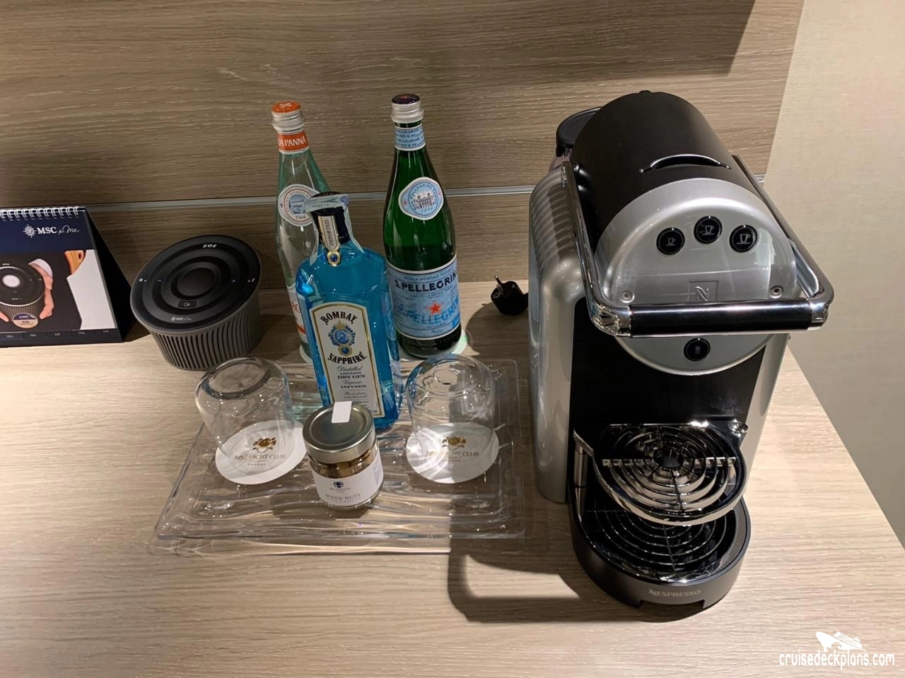 Butler Service / Concierge Service / Priority Check In / Priority Luggage Delivery / Priority Debarkation / Priority Tender Boarding / Exclusive Lounge / Exclusive Dinner Restaurant / Priority Dining Reservations / Exclusive Pool / Exclusive Outdoor Lounge / Pillow Menu / 24-hour room service / Welcome package (Prosecco and chocolate box) / Access to Top Exclusive Solarium / Bathrobe and slippers in cabin / Access to Thermal area / 40% off dedicated Spa prepaid package / 10% off Spa treatments purchased on board / Premium Extra Drink Package / Premium Internet Package / Luggage packing/unpacking / Newspaper delivery upon request / MSC for ME wristband / Gourmet restaurant for breakfast, lunch and dinner / Panoramic Top Sail Lounge with bar /Amenities are subject to change without notice.