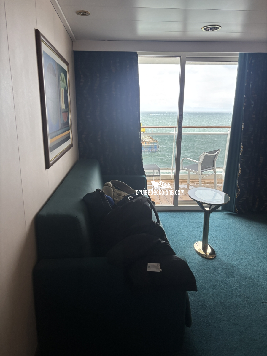Midship Balconies are larger. Forward and Aft balconies are around 126 square feet plus 40 square foot balcony. Category BR1 sleeps up to 3. Category BM1 and BM2 sleep up to 2. All others sleep up to 4.Stateroom Cabin Perks