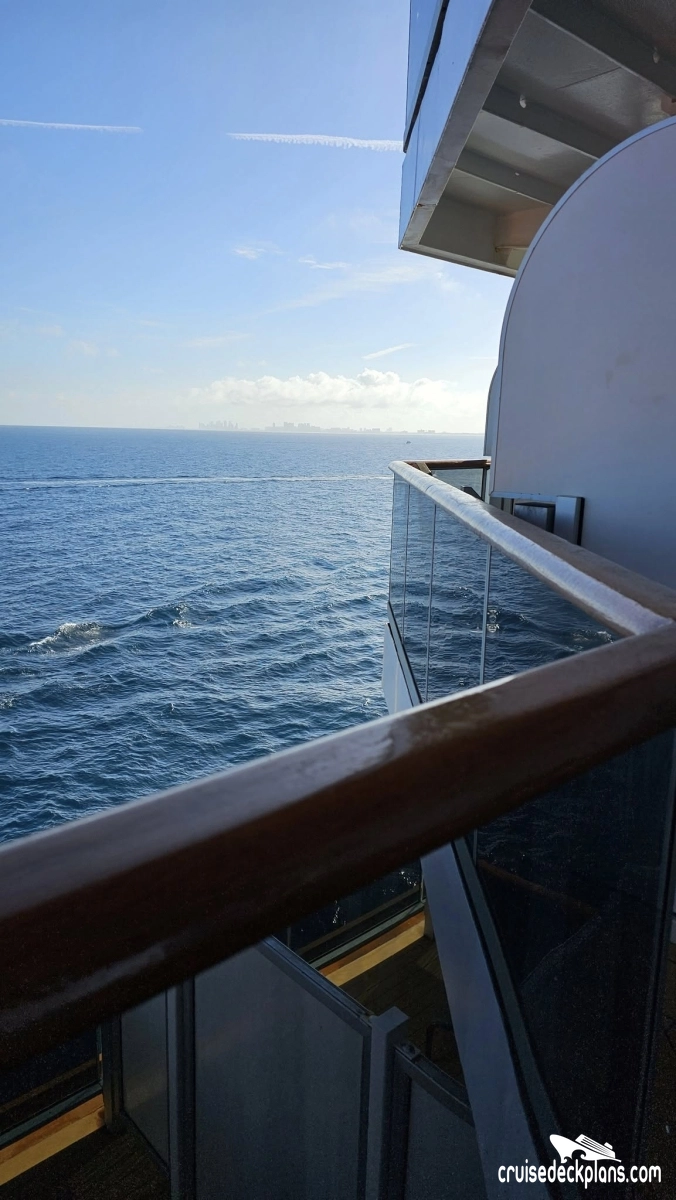 Balcony is 5.5 feet deep. Category VQ on Observation deck has a small narrow balcony. Indented balconies on deck 5 (where the deck is narrow) are 4.5 feet deep.Stateroom Cabin Perks