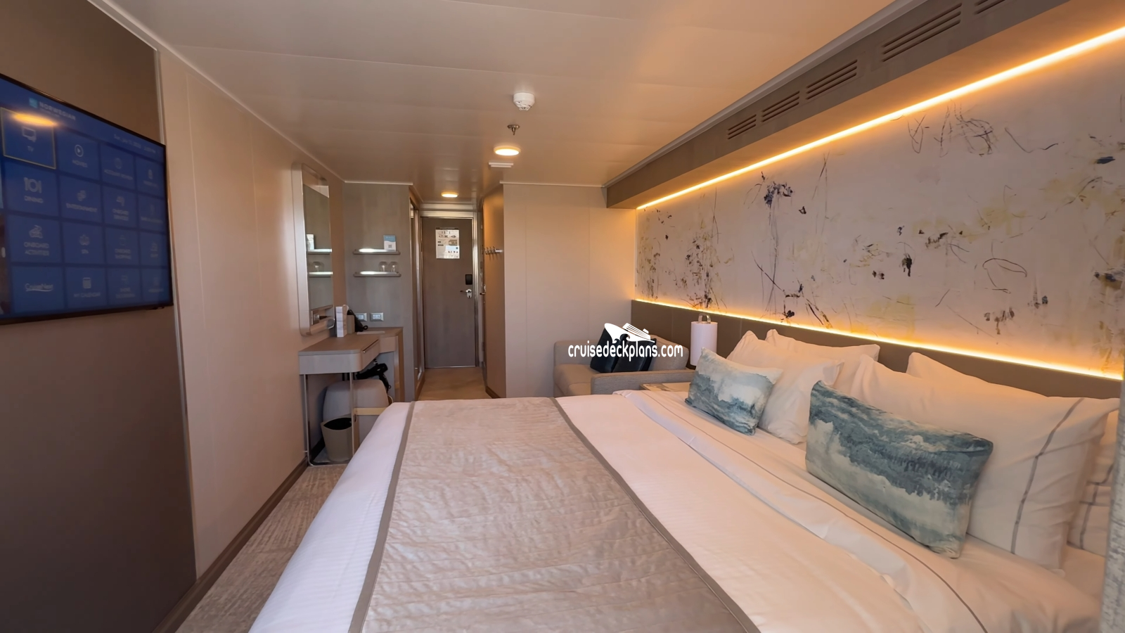 Some cabins are up to 20 square feet larger. Some balconies are up to 535 square feet. Suites on deck 10 (10352 & 10952) do not include the outdoor hot tub.Stateroom Cabin Perks