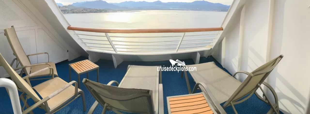 Cabin sizes range from 583 to 598 square feet plus balcony. Balcony sizes range from283 to 364 square feet.Stateroom Cabin Perks