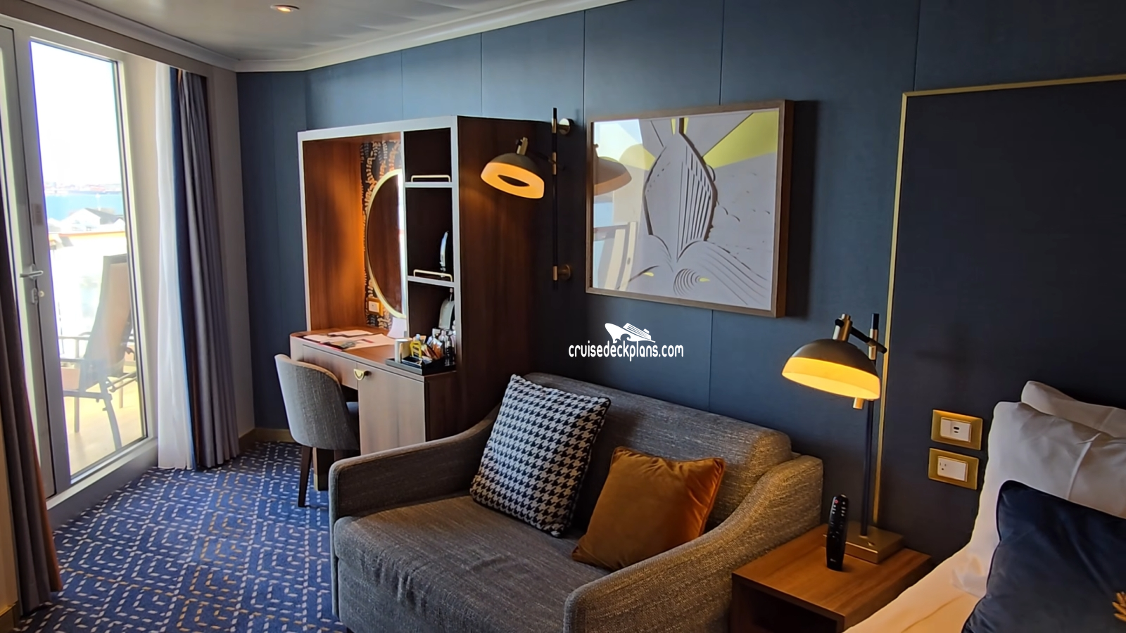 - Exclusive access to the Princess Grill restaurant, where you can dine anytime at your reserved table- Private balcony with seating and sea views
