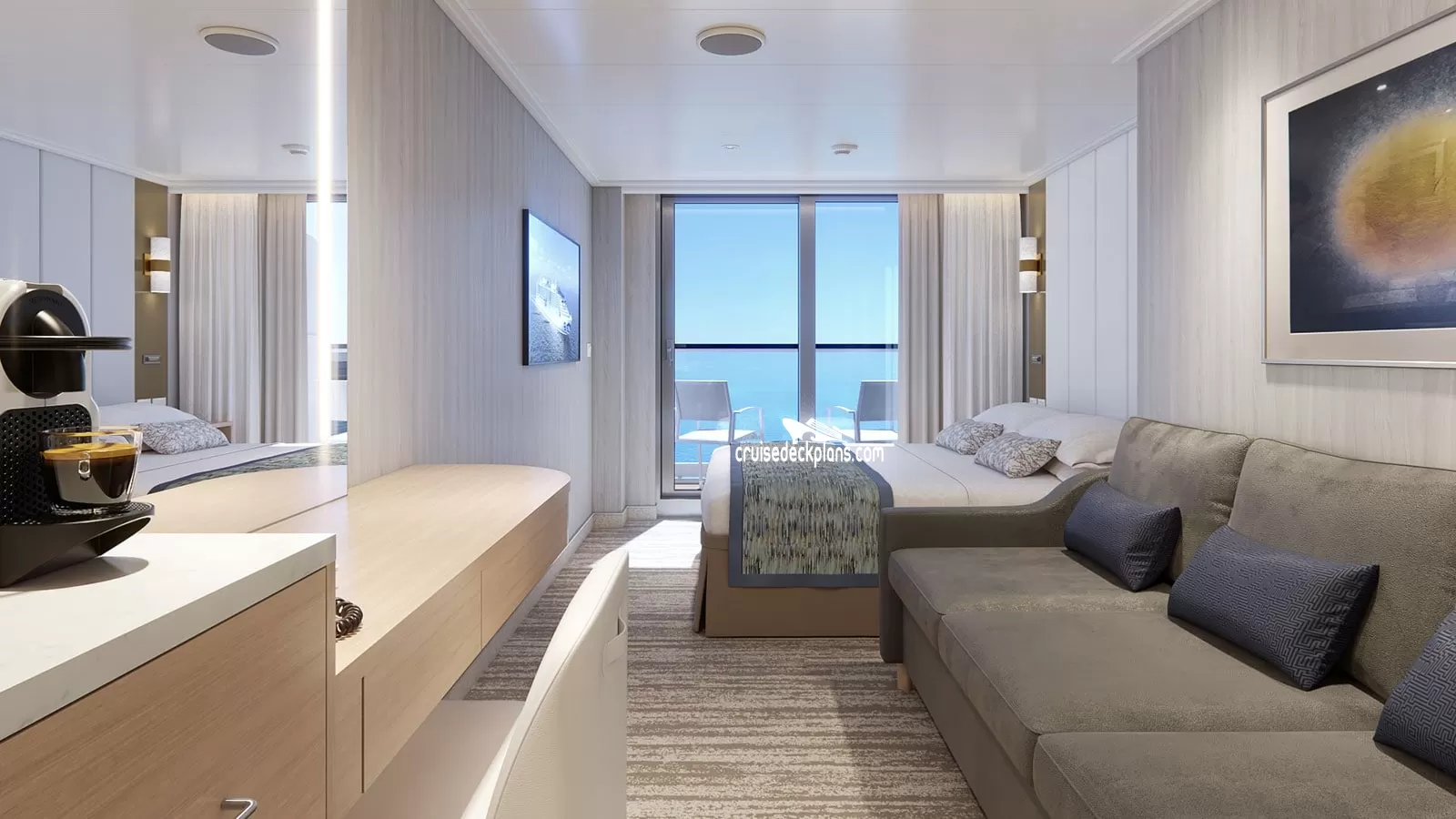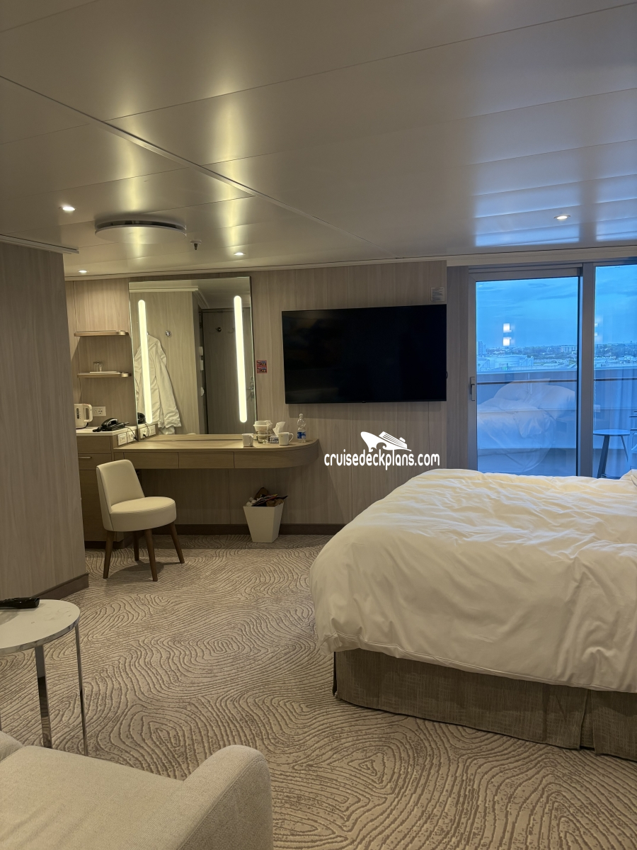 - Balcony with 2-4 chairs, table and ottoman- Private cabana beside your balcony for an extra-large outdoor lounge space