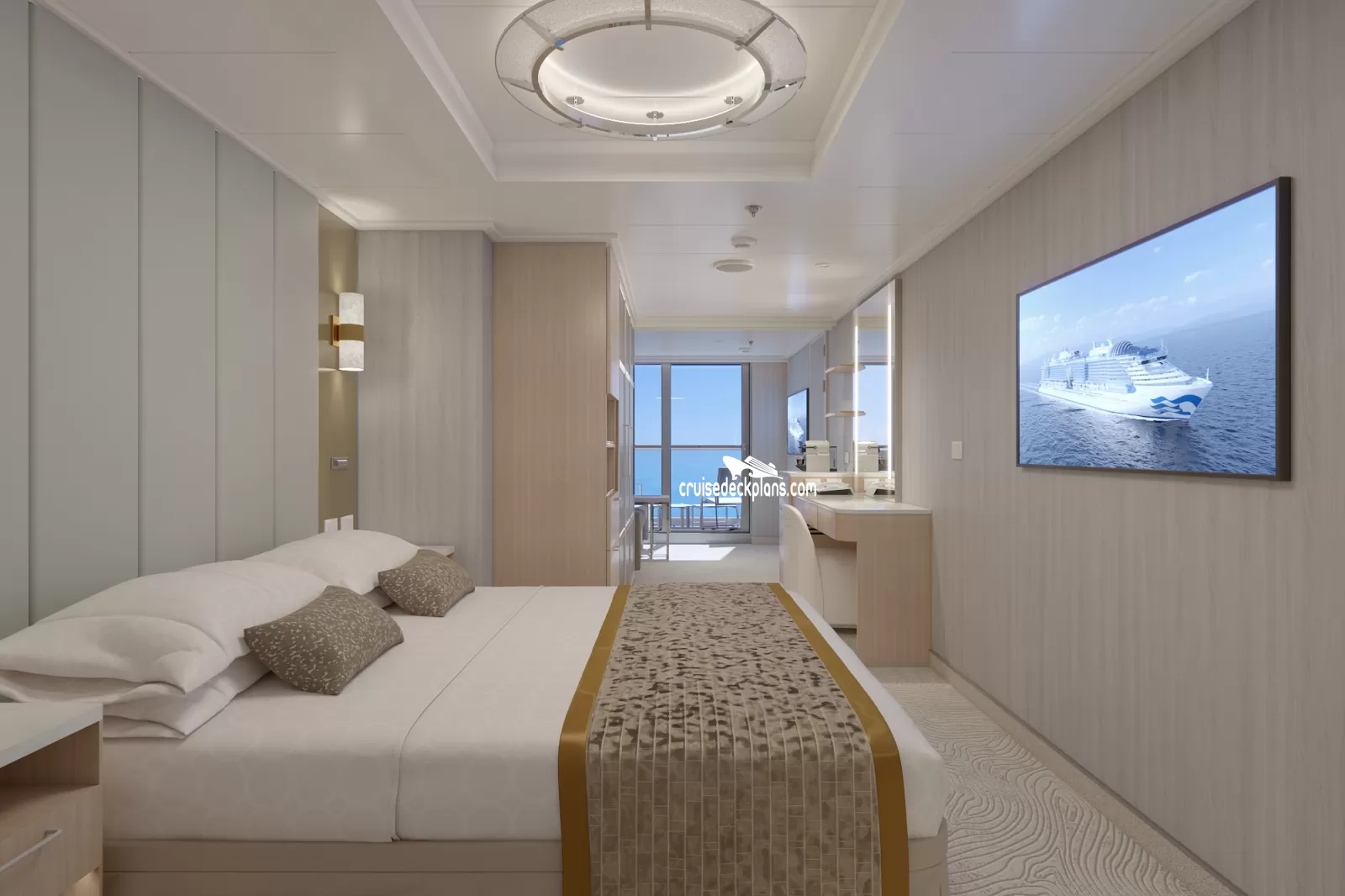 Built in 2025, the Princess Cruises Star Princess internal volume is 176K tons and has 2162 staterooms for up to 5189 passengers served by 1547 crew. There are 20 passenger decks, 10 with cabins. You can expect a space ratio of 34 gross tons per passenger on this ship. On this page are the current deck plans for Star Princess showing deck plan layouts, public venues and all the types of cabins including pictures and videos.