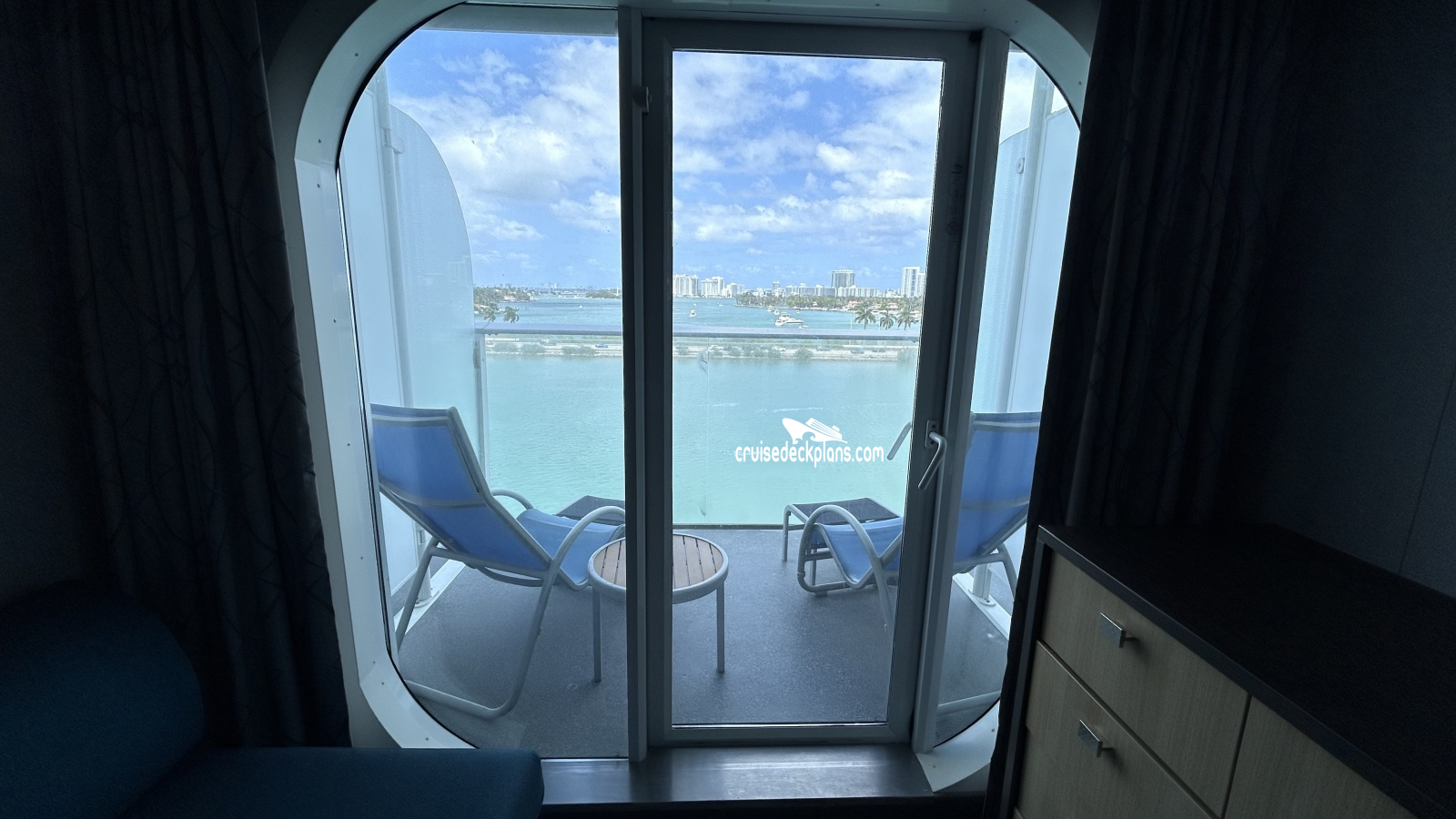 - Floor-to-ceiling glass doors that lead to your private veranda with lounge chairs- Two twin beds that convert to a queen-sized bed (except for aft cabins)