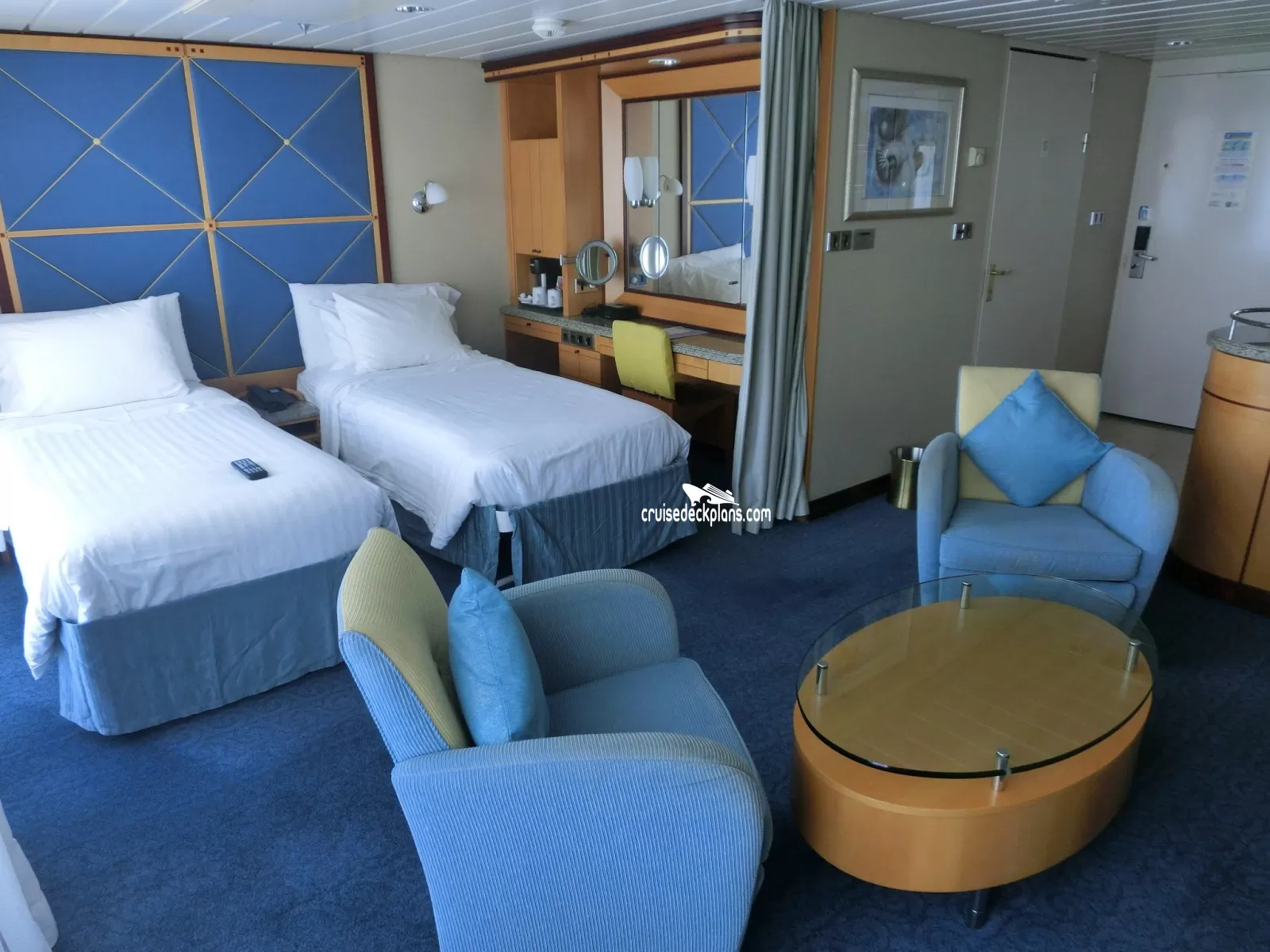 Voyager of the Seas Grand Suite - 1 Bedroom cabin location, stateroom cabin videos, stateroom cabin pictures, floor plans, diagrams, stateroom features and perks. Cruisedeckplans.com also provides links to actual stateroom cabin pictures and videos on this page. You can see details and floor plans for all of Voyager of the Seas's different stateroom cabin categories on the NEW cabins page.
