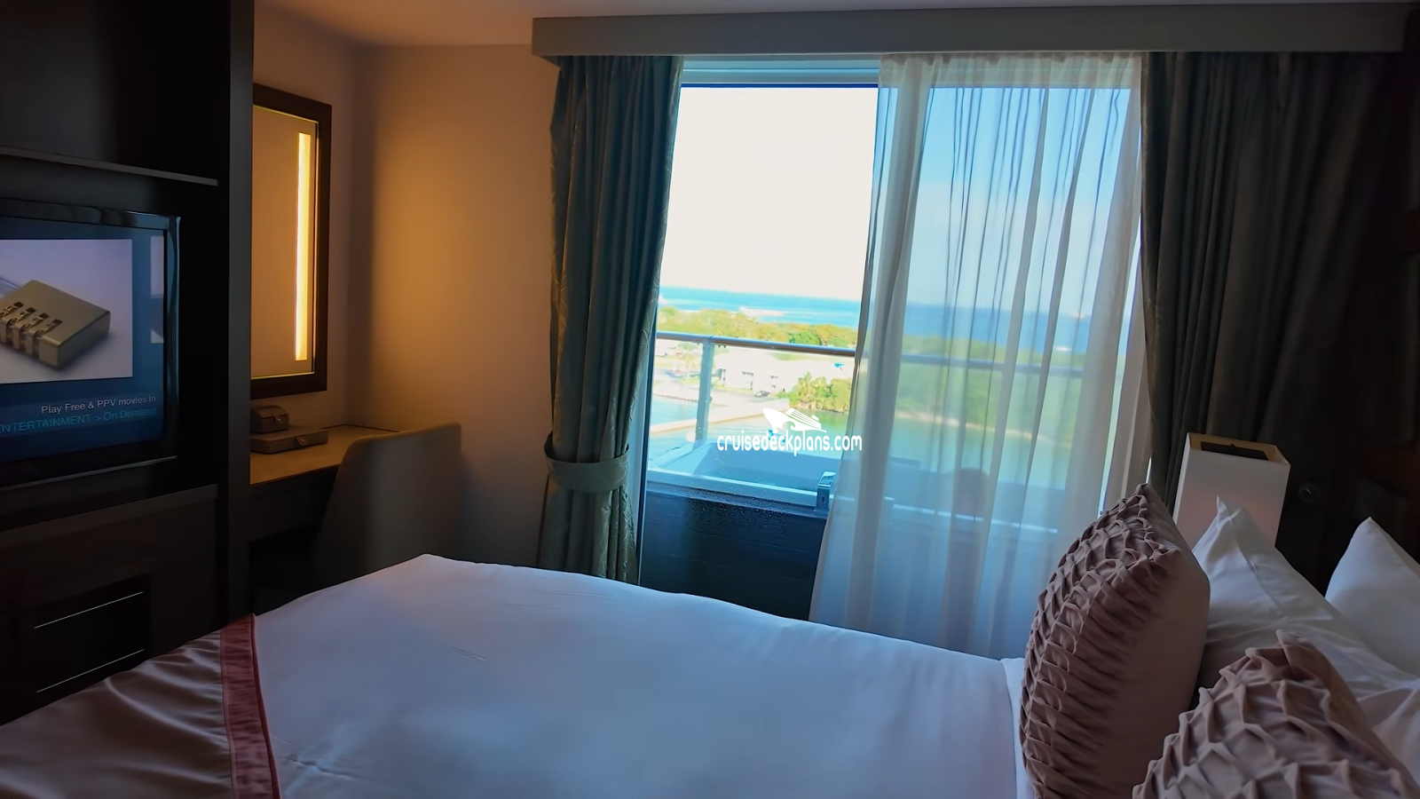 Scroll over cabin (stateroom) tiles below to click and watch videos. Cruisedeckplans.com shows up to 10 of the most recent videos added to our collection on this page. Be sure to click the link in the section below to see other cabins we have videos for. The date shown is the date video was published. Use this to see decor changes.