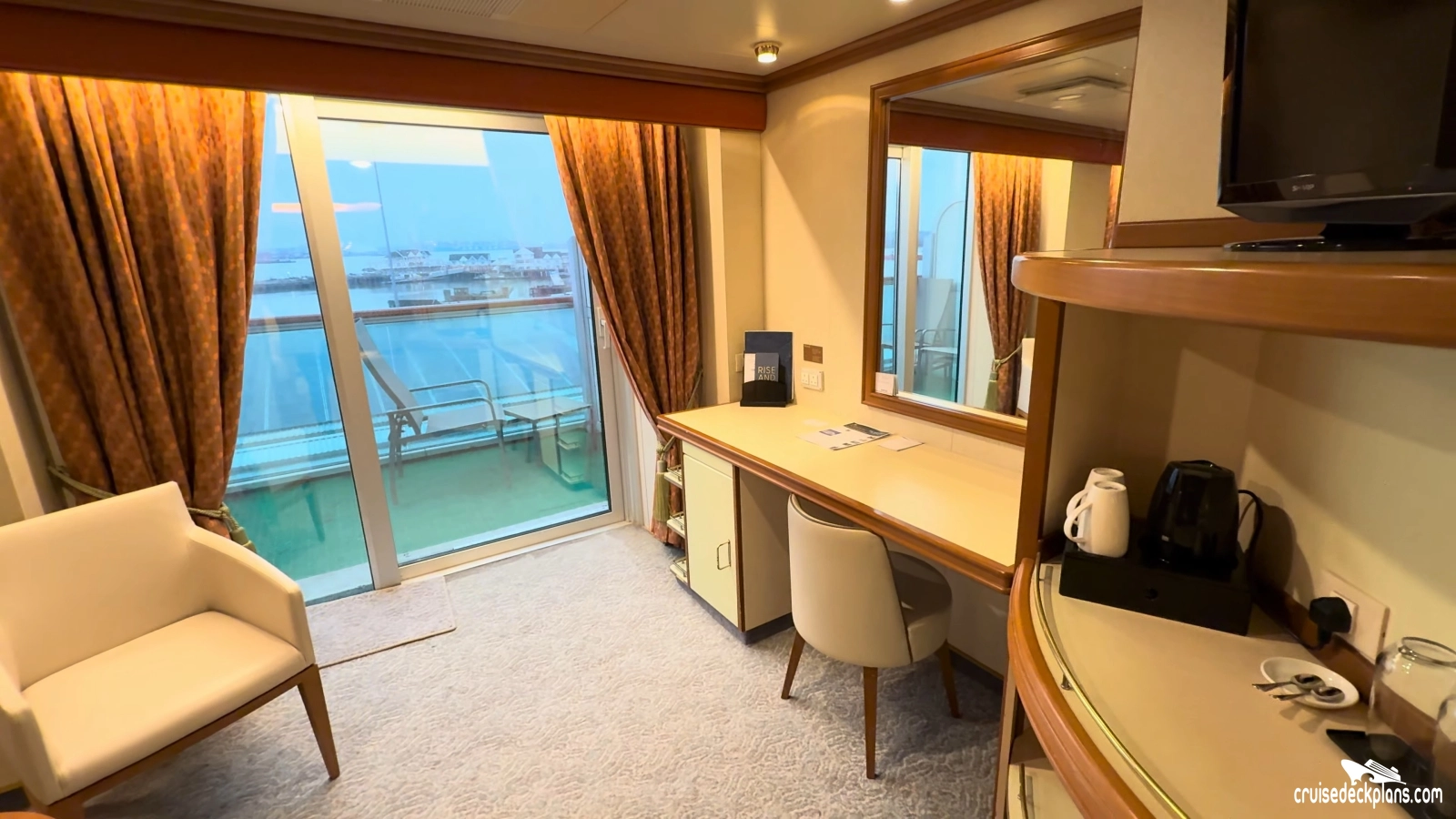 Ventura Superior Deluxe Balcony cabin location, stateroom cabin videos, stateroom cabin pictures, floor plans, diagrams, stateroom features and perks. Cruisedeckplans.com also provides links to actual stateroom cabin pictures and videos on this page. You can see details and floor plans for all of Ventura's different stateroom cabin categories on the NEW cabins page.