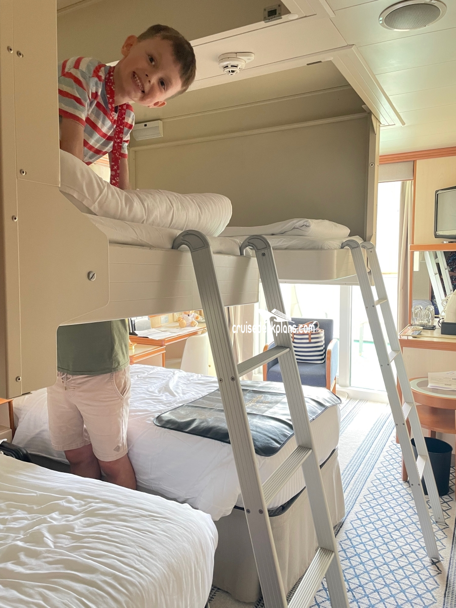 - Two lower beds convertible to king-sized bed
