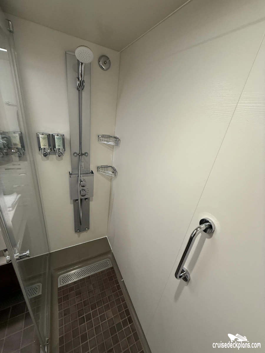 - Waterfall shower with multiple body spray jets and handheld shower head