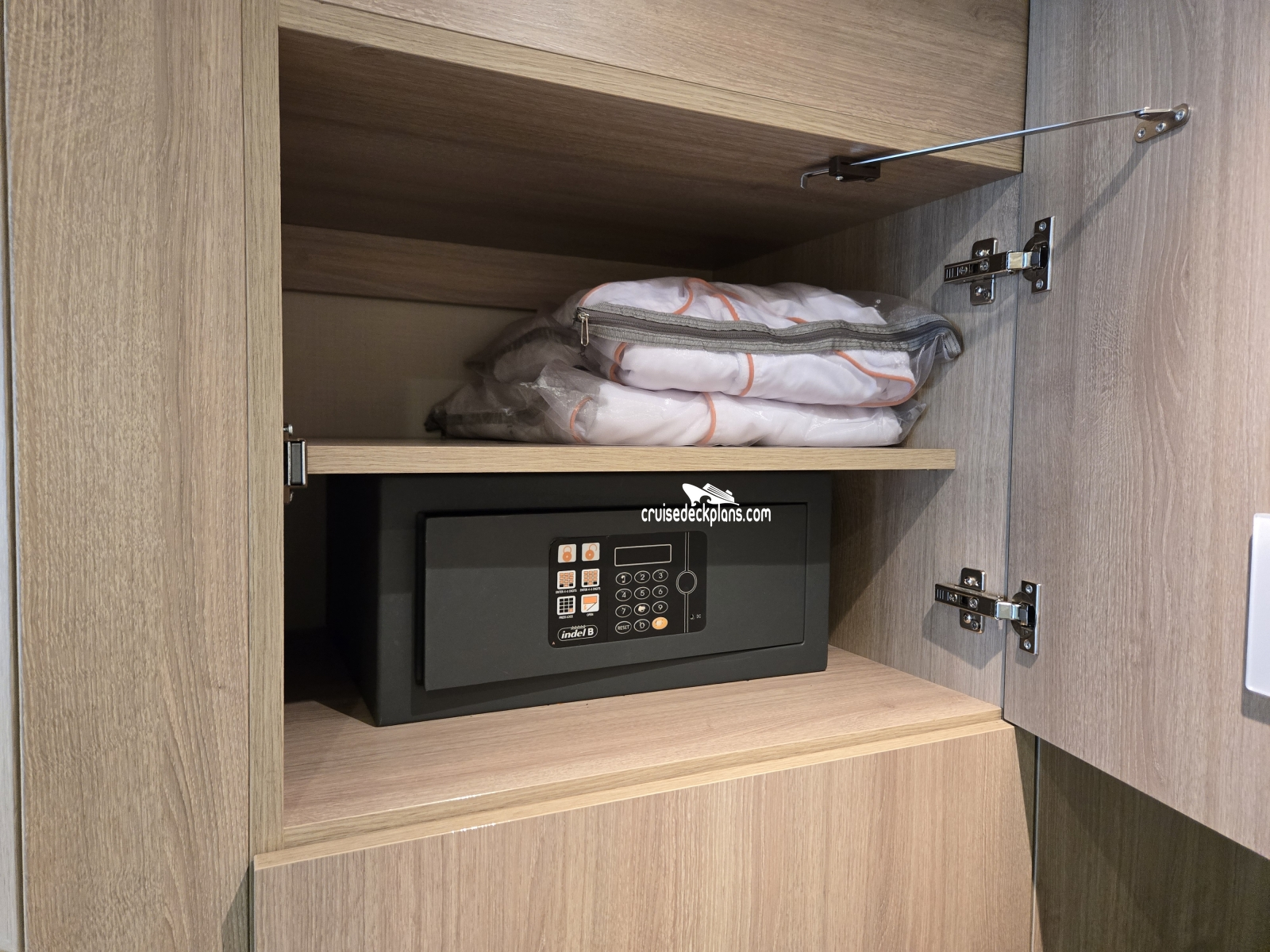 - Multi-channel music, mini-fridge with items for purchase, safety deposit box, phone