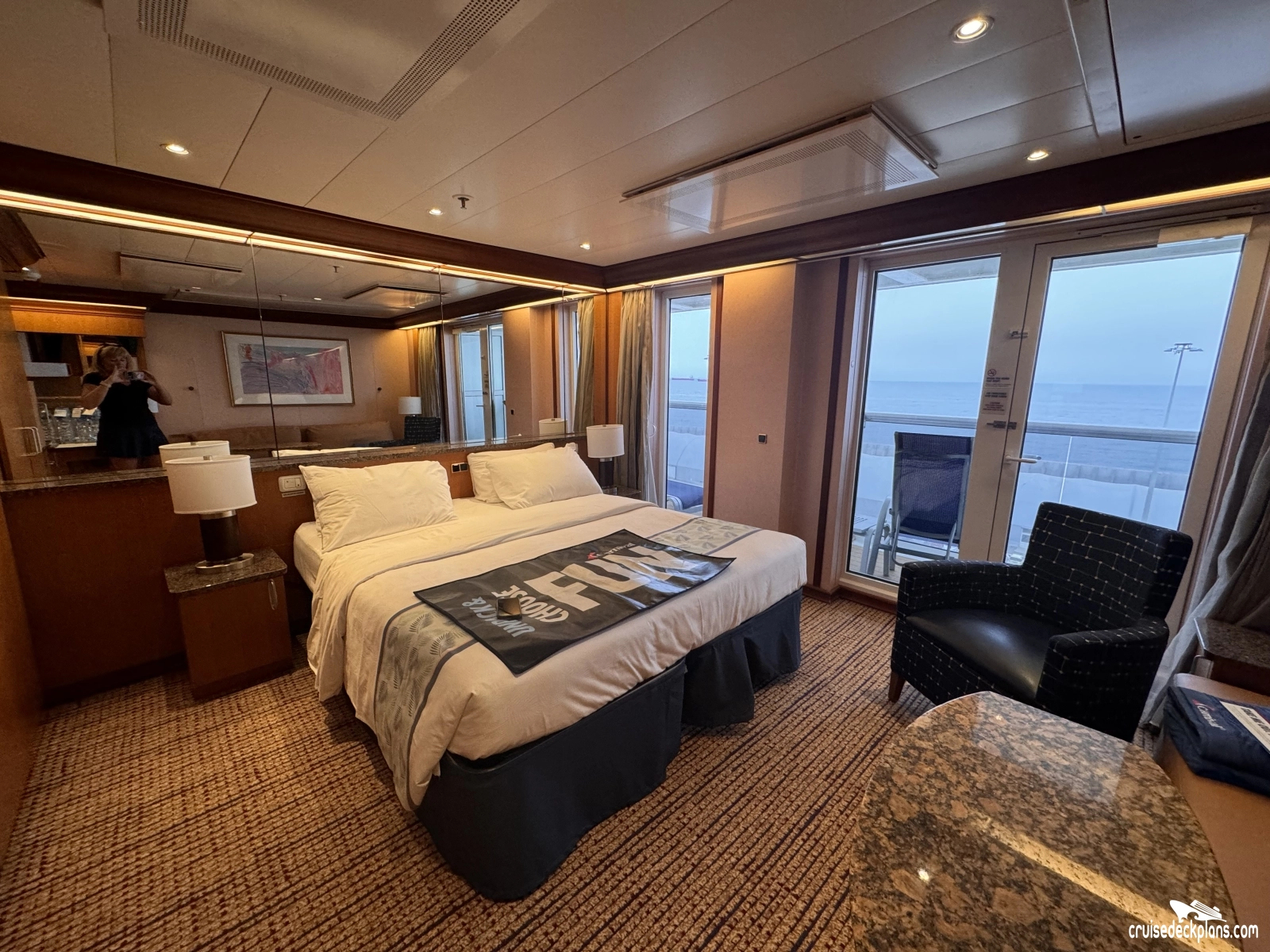 Listing of decks with Ocean Suite cabins and category codes available on those decks:Carnival Legend Ocean Suite pictures