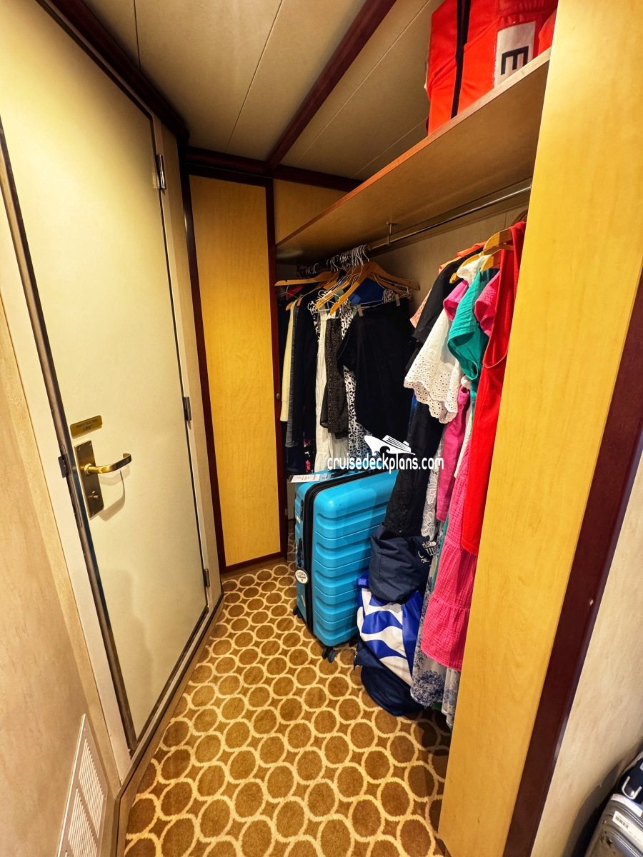 IMPORTANT NOTE: Category DV, DW, DZ have obstructed views due to solid steel railings or tops of lifeboats. Category DZ upper deck balconies can only be used while in port. When upper berth or sofa bed is used it will block balcony. Cabin sizes with balcony ranges from 233 to 291 square feet. Category DV is 253 square feet. Category DZ is 263 to 291 square feet including balcony. Category DB, DC, DD, DE, DF, DW are 233 square feet. Category DA is 249 square feet.