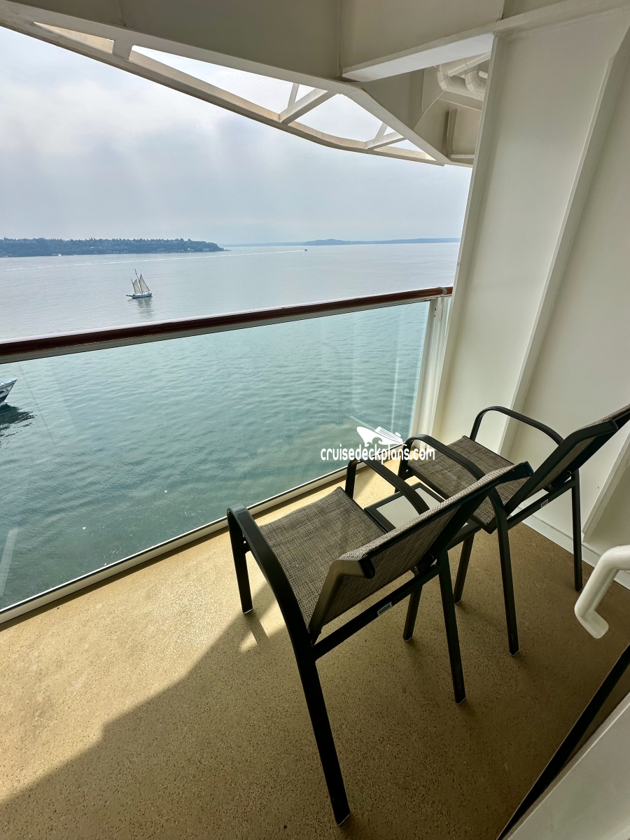 Aft B1 Balconies are 44 to 77 square feet. Category B6 balconies are 70 square feet.