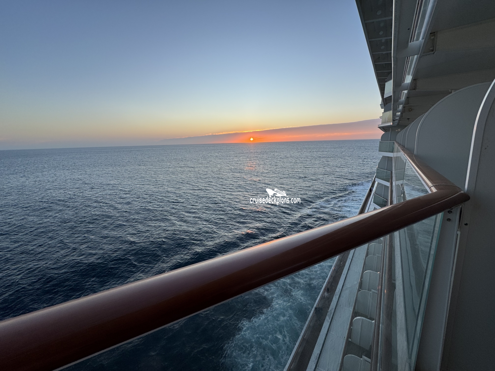 Balcony size ranges from 32 to 90 square feet. Aft B1 Balconies size ranges from 40 to 149 square feet. Category B6 balconies are 155 square feet.