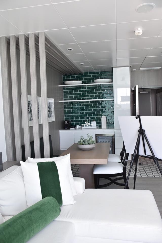 Butler Service / Concierge Service / Priority Check In / Priority Debarkation / Priority Tender Boarding / Reserved Show Seats / Dining in the Stateroom / Afternoon Canapes / Afternoon Tea / Complimentary Shoe Shine / Welcome Champagne / Complimentary Mini-bar Setup / Exclusive Lounge / Priority Dining Reservations / Complimentary Internet / Thick Cotton Robes / Pillow Menu / Dedicated private restaurant Luminae / Access to the private Michaels Club Lounge / Complimentary laundry service twice per cruise / Hi-tech customizable mattress / assistance with unpacking / in-suite espresso and cappuccino / Complimentary Premium Beverage Package for all guests in suite. Minors will automatically receive a Premium-Non-Alcoholic Beverage Package / Unlimited dining in all specialty restaurants including lunch, dinner, and one Champagne High Tea / premium Reverie Dream Sleep System customizable mattresses Celebrity eXhale bedding / Unlimited Internet access / Daily Delectables rotation of savory and sweet snacks / Luxury bath amenities / Complimentary mini-bar stocked daily with water, sodas, beer / Reserved theatre seating on Evening Chic nights / Welcome bottle of Perrier-Jouet champagne / private area on Deck 14 accessible only by guests carrying the suites SeaPass card /