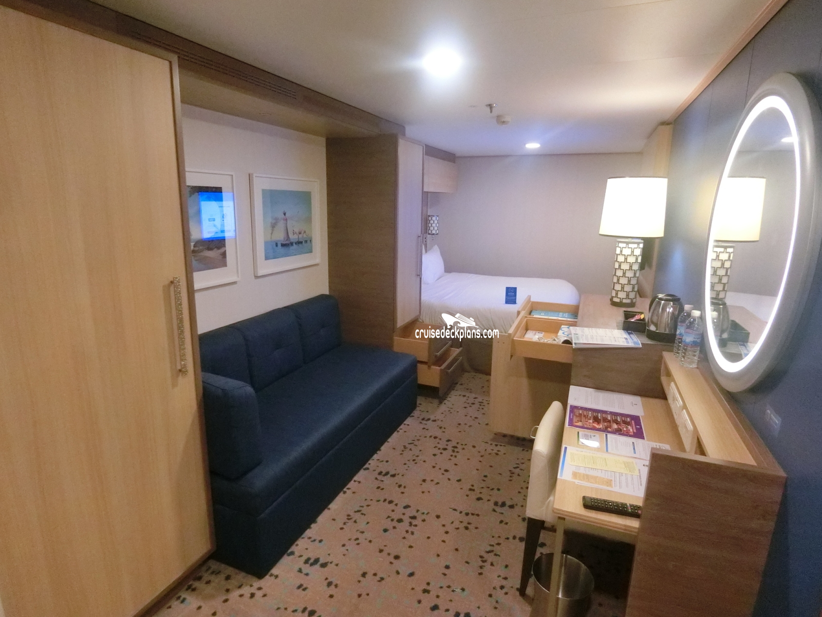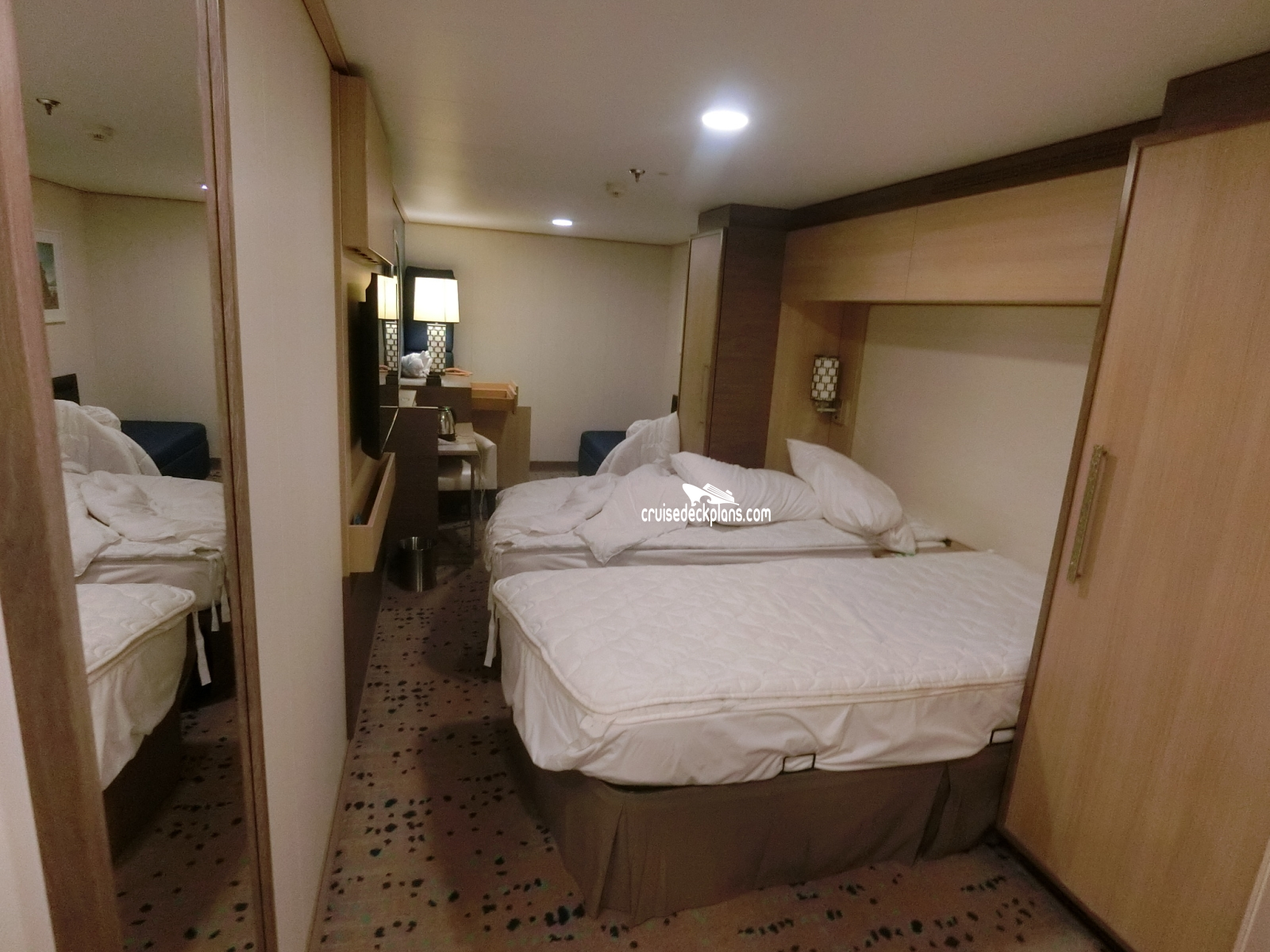 Spectrum of the Seas Interior cabin location, stateroom cabin videos, stateroom cabin pictures, floor plans, diagrams, stateroom features and perks. Cruisedeckplans.com also provides links to actual stateroom cabin pictures and videos on this page. You can see details and floor plans for all of Spectrum of the Seas's different stateroom cabin categories on the NEW cabins page.