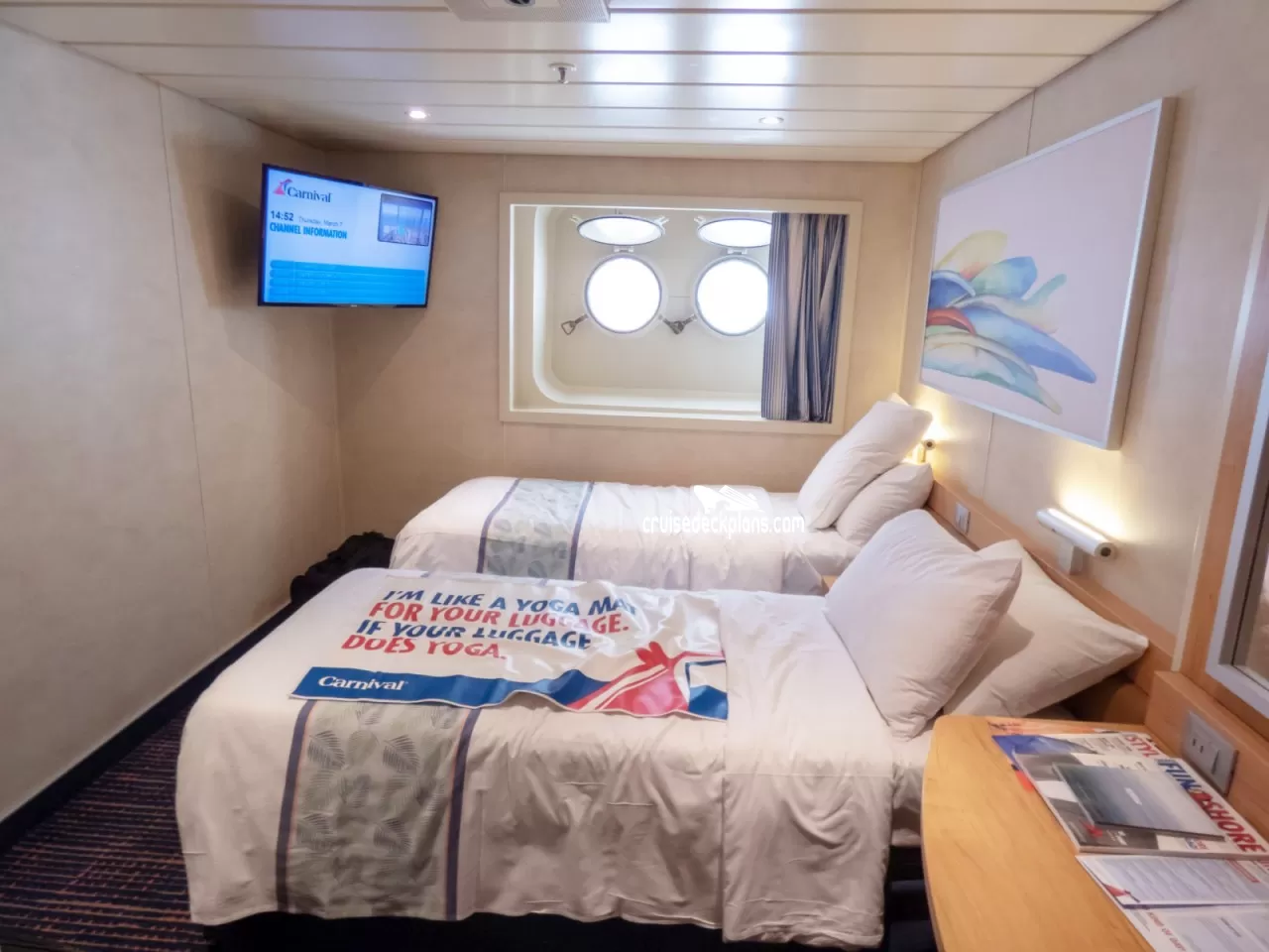 Carnival Paradise Porthole cabin location, stateroom cabin videos, stateroom cabin pictures, floor plans, diagrams, stateroom features and perks. Cruisedeckplans.com also provides links to actual stateroom cabin pictures and videos on this page. You can see details and floor plans for all of Carnival Paradise's different stateroom cabin categories on the NEW cabins page.