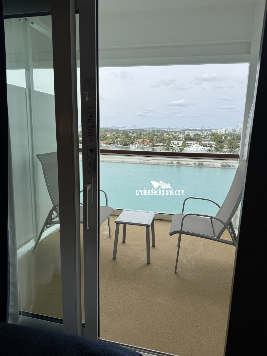 Balcony size ranges from 32 to 90 square feet. Aft B1 Balconies size ranges from 40 to 149 square feet. Category B6 balconies are 155 square feet. The new BA balconies (cabins 15108 to 15114) have a 75 square foot balcony.