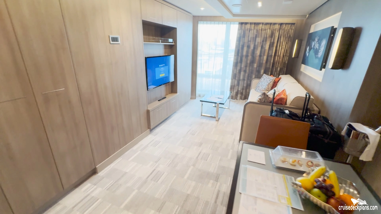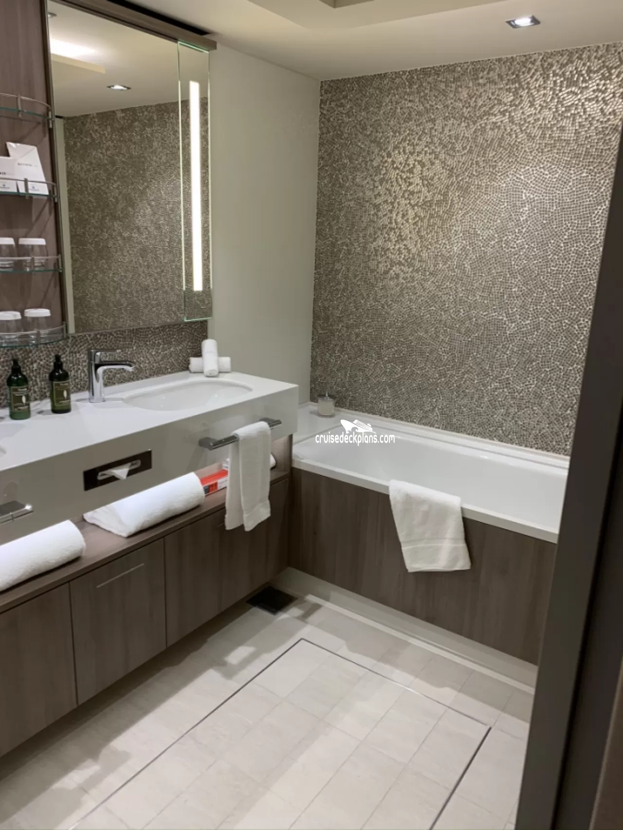 - IMPORTANT NOTE: Category H6 aft suites on decks 11 and 14 have large window in bathroom overlooking aft balcony. Category H6 aft suites on decks 9, 10, 12, 13 and 15 have bedroom overlooking aft balcony.