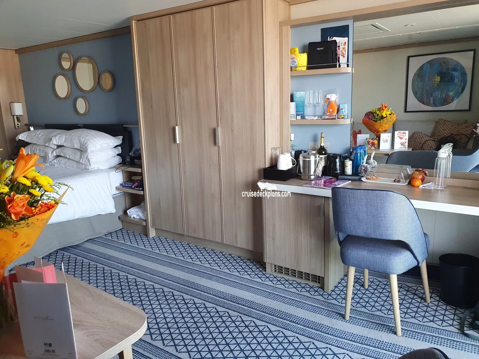 Iona Deluxe Balcony cabin location, stateroom cabin videos, stateroom cabin pictures, floor plans, diagrams, stateroom features and perks. Cruisedeckplans.com also provides links to actual stateroom cabin pictures and videos on this page. You can see details and floor plans for all of Iona's different stateroom cabin categories on the NEW cabins page.