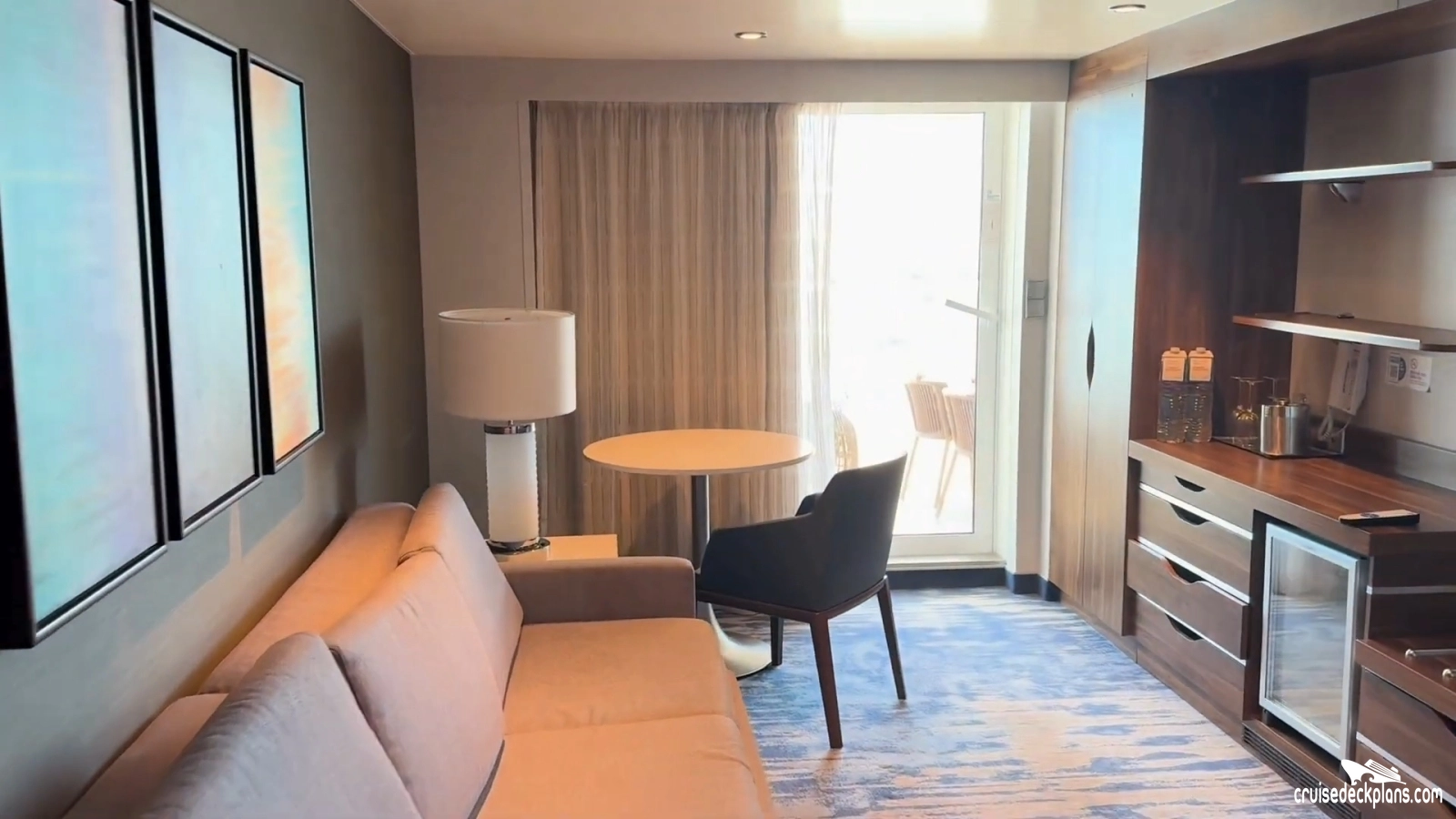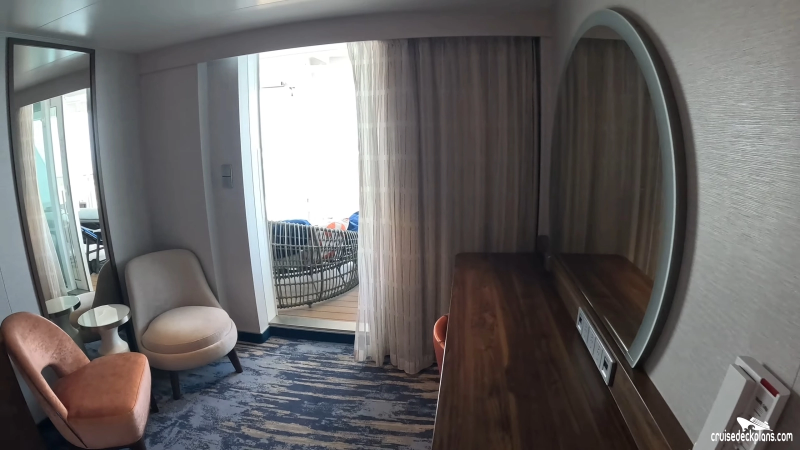Scroll over cabin (stateroom) tiles below to click and watch videos. Cruisedeckplans.com shows up to 10 of the most recent videos added to our collection on this page. Be sure to click the link in the section below to see other cabins we have videos for. The date shown is the date video was published. Use this to see decor changes.