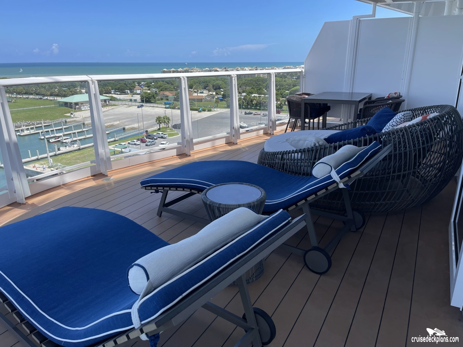 Deluxe Vista Suite (LS) is 463 square foot stateroom plus 398 square foot balcony. Spa Deluxe Vista Suite is 474 square foot stateroom plus 646 square foot balcony. Children in Havana Stateroom (Category HU) must be 12 years or older. The Havana features an exclusive ocean-air deck with pool daily till 7:00 p.m. The Havana bar is open to all guests.
