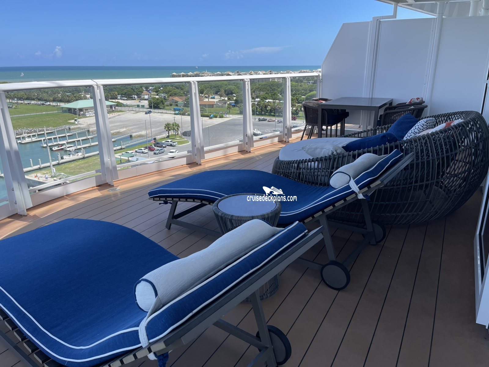 Deluxe Vista Suite (LS) is 463 square foot stateroom plus 398 square foot balcony. Spa Deluxe Vista Suite is 474 square foot stateroom plus 646 square foot balcony. Children in Havana Stateroom (Category HU) must be 12 years or older. The Havana features an exclusive ocean-air deck with pool daily till 7:00 p.m. The Havana bar is open to all guests.