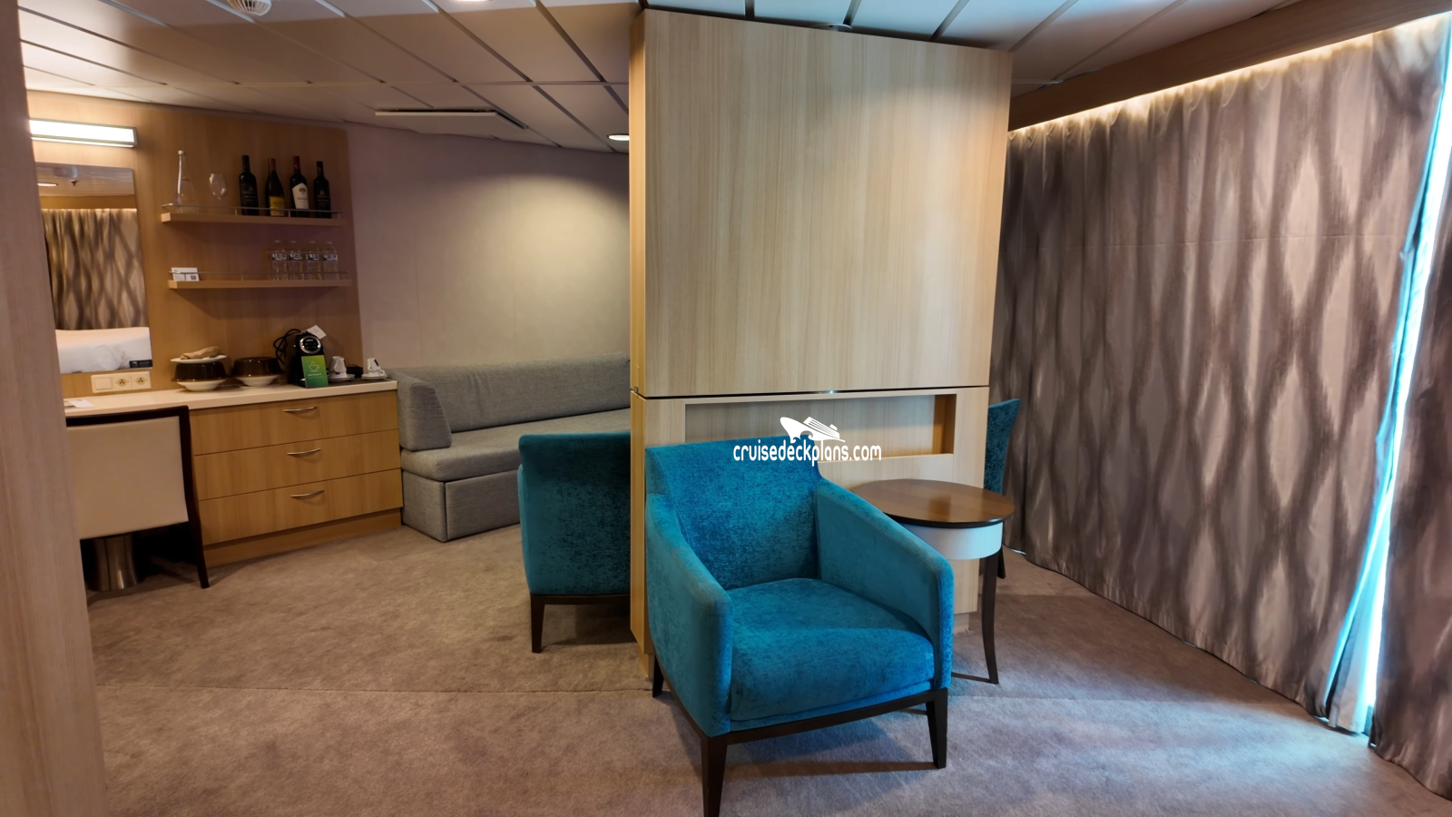 Adventure of the Seas Panoramic Suite cabin location, stateroom cabin videos, stateroom cabin pictures, floor plans, diagrams, stateroom features and perks. Cruisedeckplans.com also provides links to actual stateroom cabin pictures and videos on this page. You can see details and floor plans for all of Adventure of the Seas's different stateroom cabin categories on the NEW cabins page.