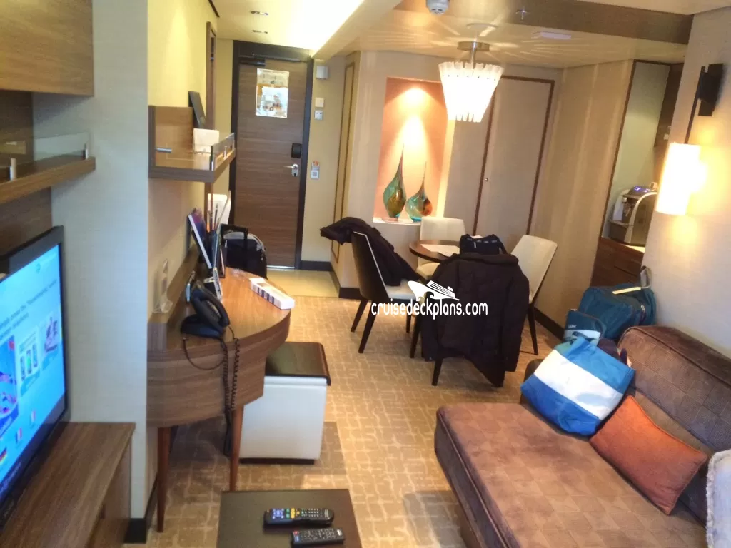 Butler Service / Concierge Service / Priority Check In / Priority Debarkation / Priority Tender Boarding / Dining in the Stateroom / Welcome Champagne / Exclusive Lounge / Exclusive Pool / Exclusive Outdoor Lounge / Thick Cotton Robes / Pillow Menu / Espresso & Cappuccino machine / Special suite menus / Bliss collection pillow-top mattress / Treats delivered to door every night / Courtyard valet / Escort to suite /