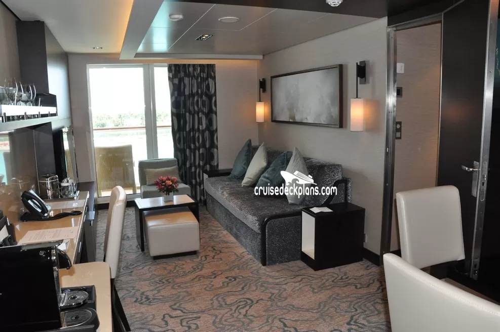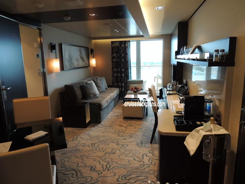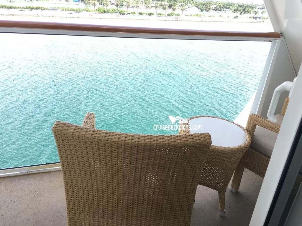 Butler Service / Concierge Service / Priority Check In / Priority Debarkation / Priority Tender Boarding / Dining in the Stateroom / Welcome Champagne / Exclusive Lounge / Exclusive Pool / Exclusive Outdoor Lounge / Thick Cotton Robes / Pillow Menu / Espresso & Cappuccino machine / Special suite menus / Bliss collection pillow-top mattress / Treats delivered to door every night / Courtyard valet / Escort to suite /