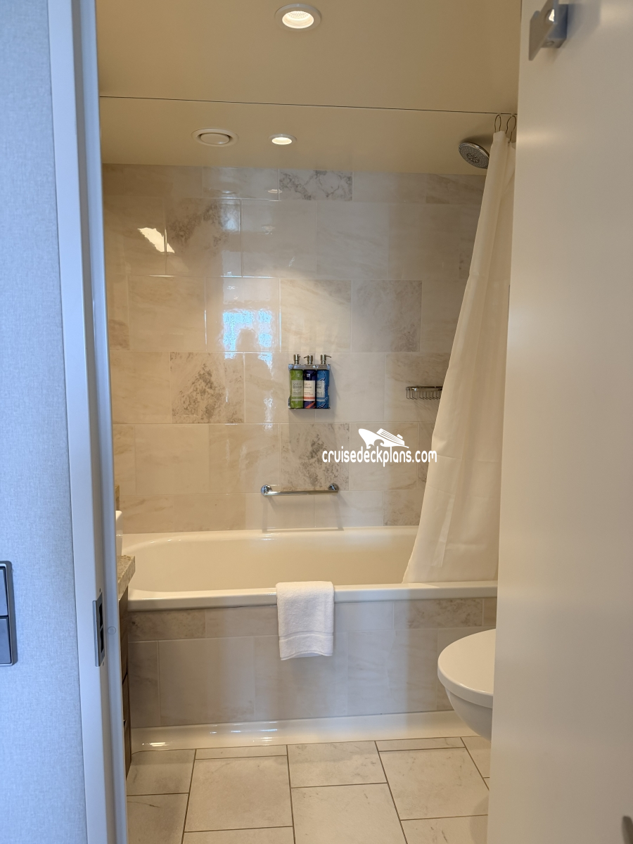 This suite can be combined with nearby balcony and interior cabins to create one large family connected stateroom with 3 bedrooms, 3 bathrooms and a balcony for all your family needs. Sleeps 8 to 10 guests. Total square footage is 575 sq ft plus 216 sq foot balcony. You can not book this category online.