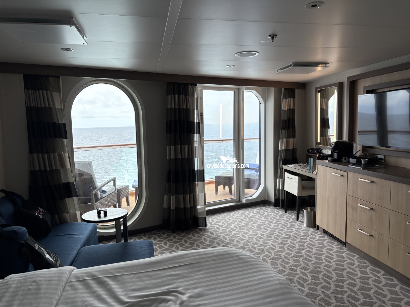 Odyssey of the Seas Junior Suite cabin location, stateroom cabin videos, stateroom cabin pictures, floor plans, diagrams, stateroom features and perks. Cruisedeckplans.com also provides links to actual stateroom cabin pictures and videos on this page. You can see details and floor plans for all of Odyssey of the Seas's different stateroom cabin categories on the NEW cabins page.