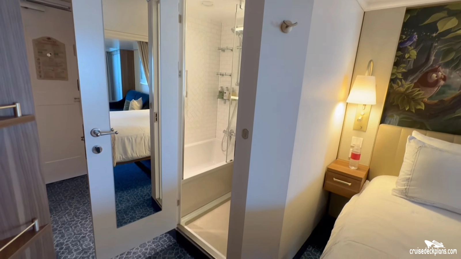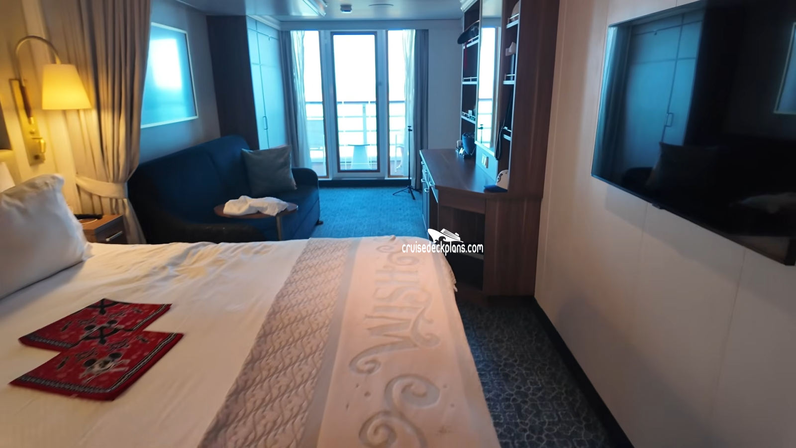 Disney Wish Deluxe Family Verandah cabin location, stateroom cabin videos, stateroom cabin pictures, floor plans, diagrams, stateroom features and perks. Cruisedeckplans.com also provides links to actual stateroom cabin pictures and videos on this page. You can see details and floor plans for all of Disney Wish's different stateroom cabin categories on the NEW cabins page.