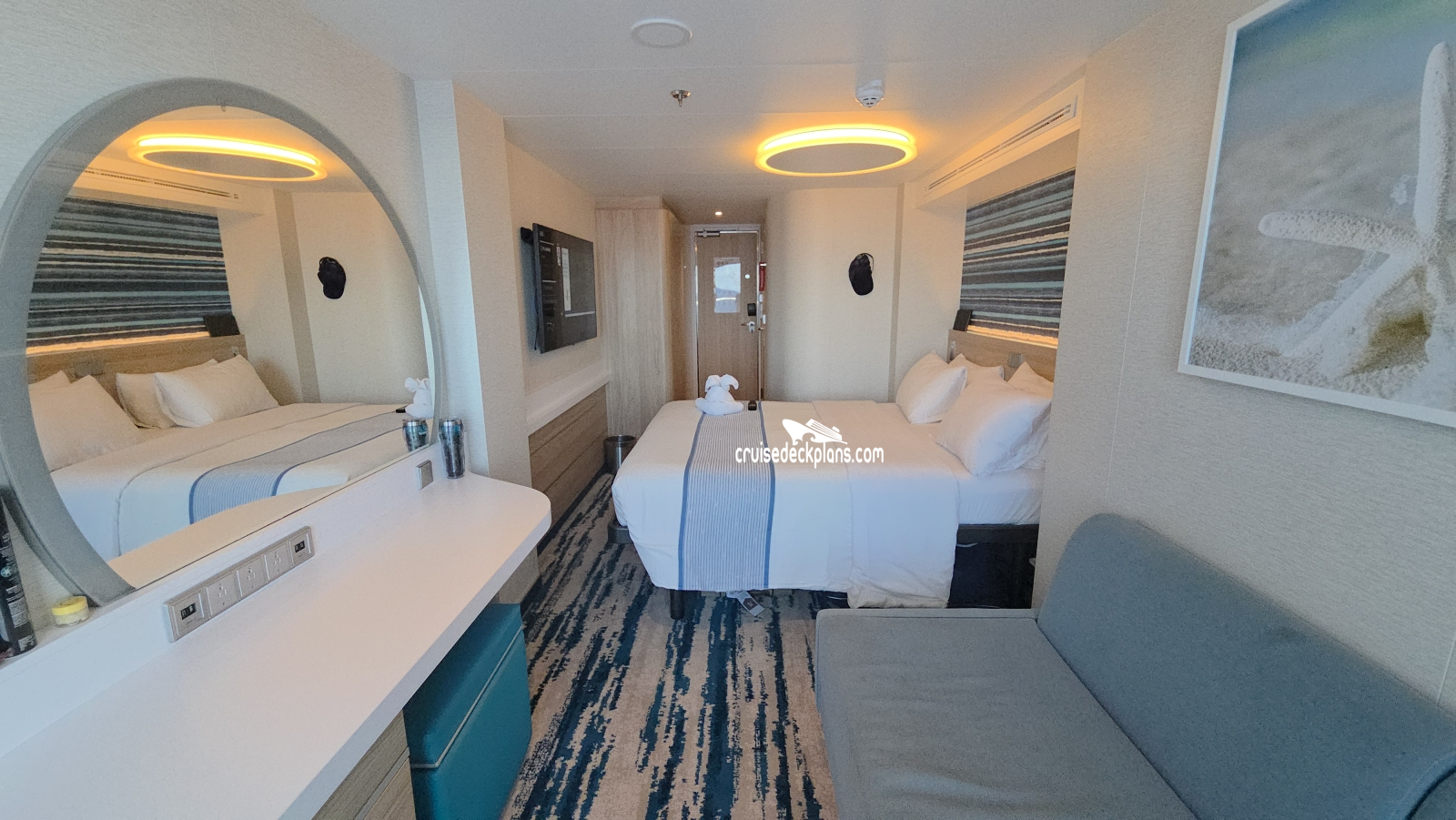 Scroll over cabin (stateroom) tiles below to click and watch videos. Cruisedeckplans.com shows up to 10 of the most recent videos added to our collection on this page. Be sure to click the link in the section below to see other cabins we have videos for. The date shown is the date video was published. Use this to see decor changes.
