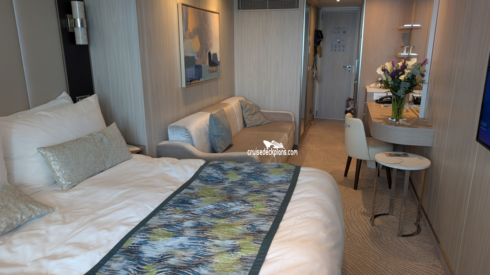 - Some cabins have bed close to the balcony, others have sofa close to the balcony.
