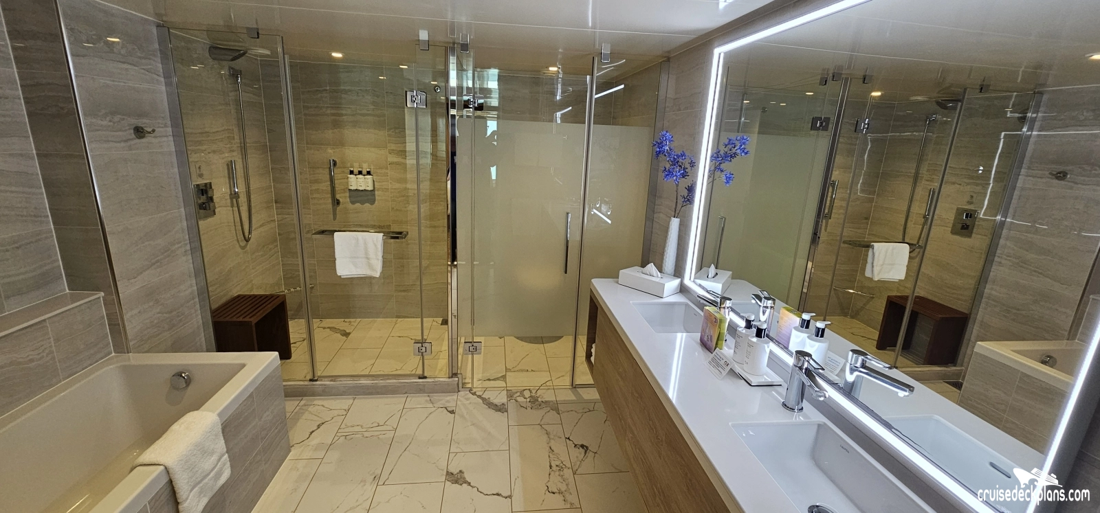 Sun Princess Signature Sky-Suite cabin location, stateroom cabin videos, stateroom cabin pictures, floor plans, diagrams, stateroom features and perks. Cruisedeckplans.com also provides links to actual stateroom cabin pictures and videos on this page. You can see details and floor plans for all of Sun Princess's different stateroom cabin categories on the NEW cabins page.