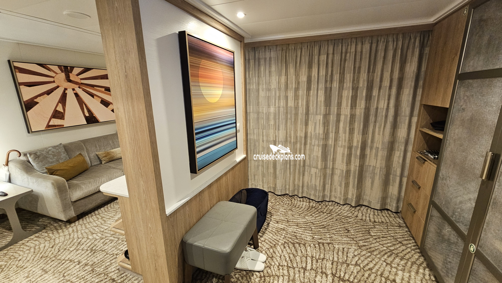 Sun Princess Signature Vista Suite cabin location, stateroom cabin videos, stateroom cabin pictures, floor plans, diagrams, stateroom features and perks. Cruisedeckplans.com also provides links to actual stateroom cabin pictures and videos on this page. You can see details and floor plans for all of Sun Princess's different stateroom cabin categories on the NEW cabins page.