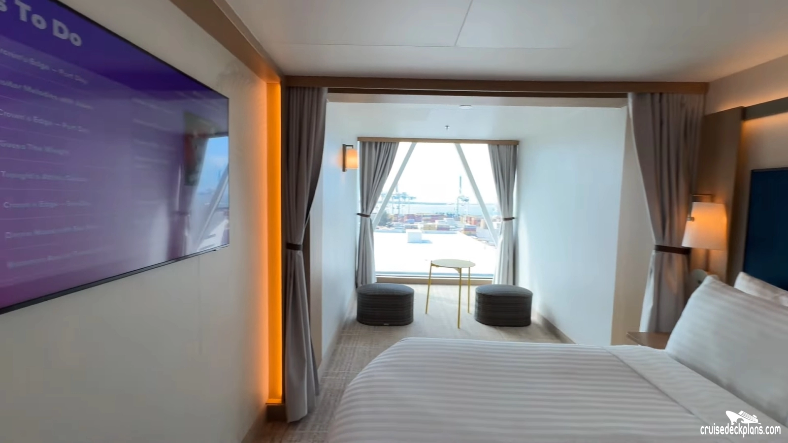 Scroll over cabin (stateroom) tiles below to click and watch videos. Cruisedeckplans.com shows up to 10 of the most recent videos added to our collection on this page. Be sure to click the link in the section below to see other cabins we have videos for. The date shown is the date video was published. Use this to see decor changes.