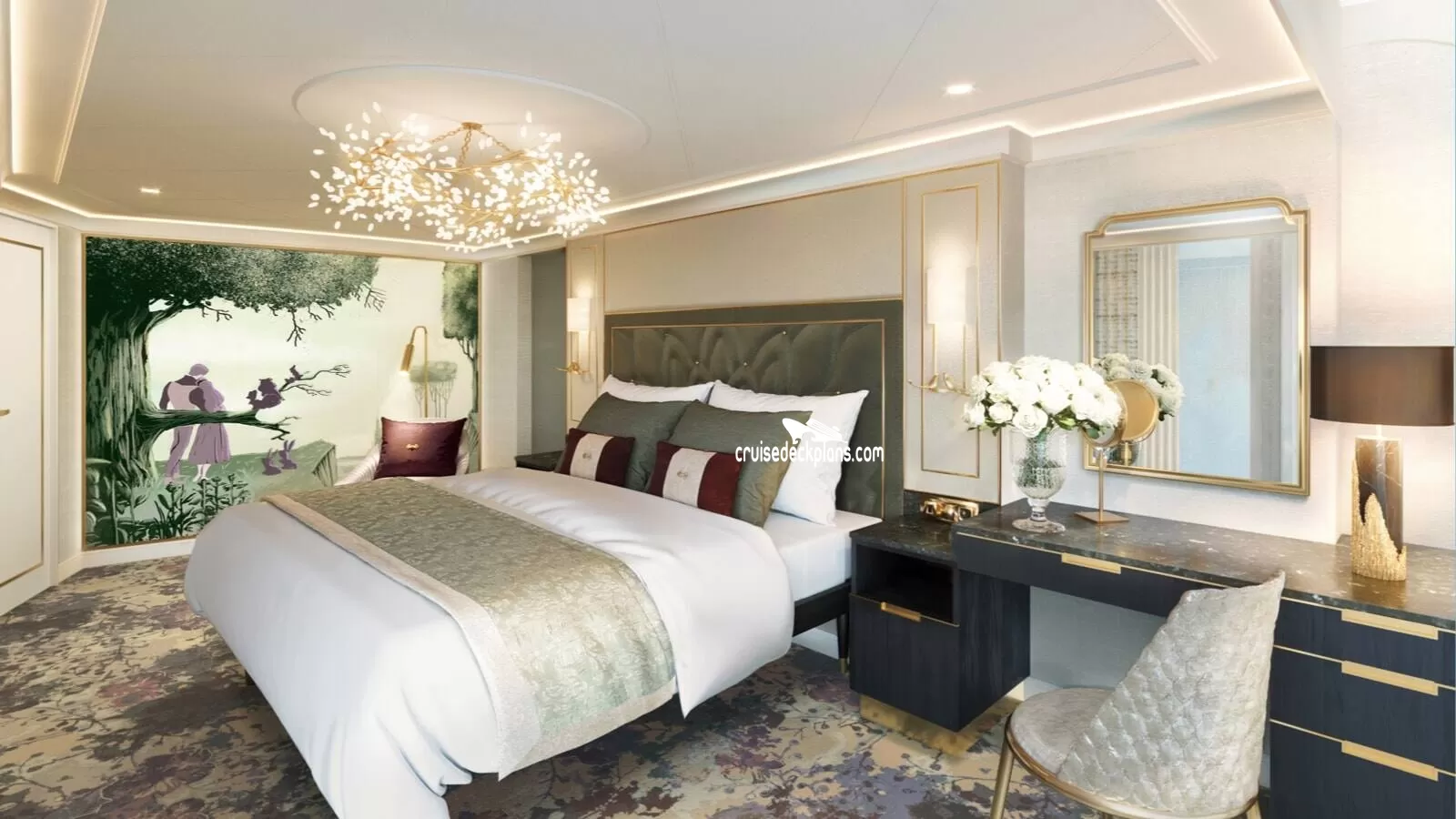 Disney Treasure Concierge 2-Story Royal Suite cabin location, stateroom cabin videos, stateroom cabin pictures, floor plans, diagrams, stateroom features and perks. Cruisedeckplans.com also provides links to actual stateroom cabin pictures and videos on this page. You can see details and floor plans for all of Disney Treasure's different stateroom cabin categories on the NEW cabins page.