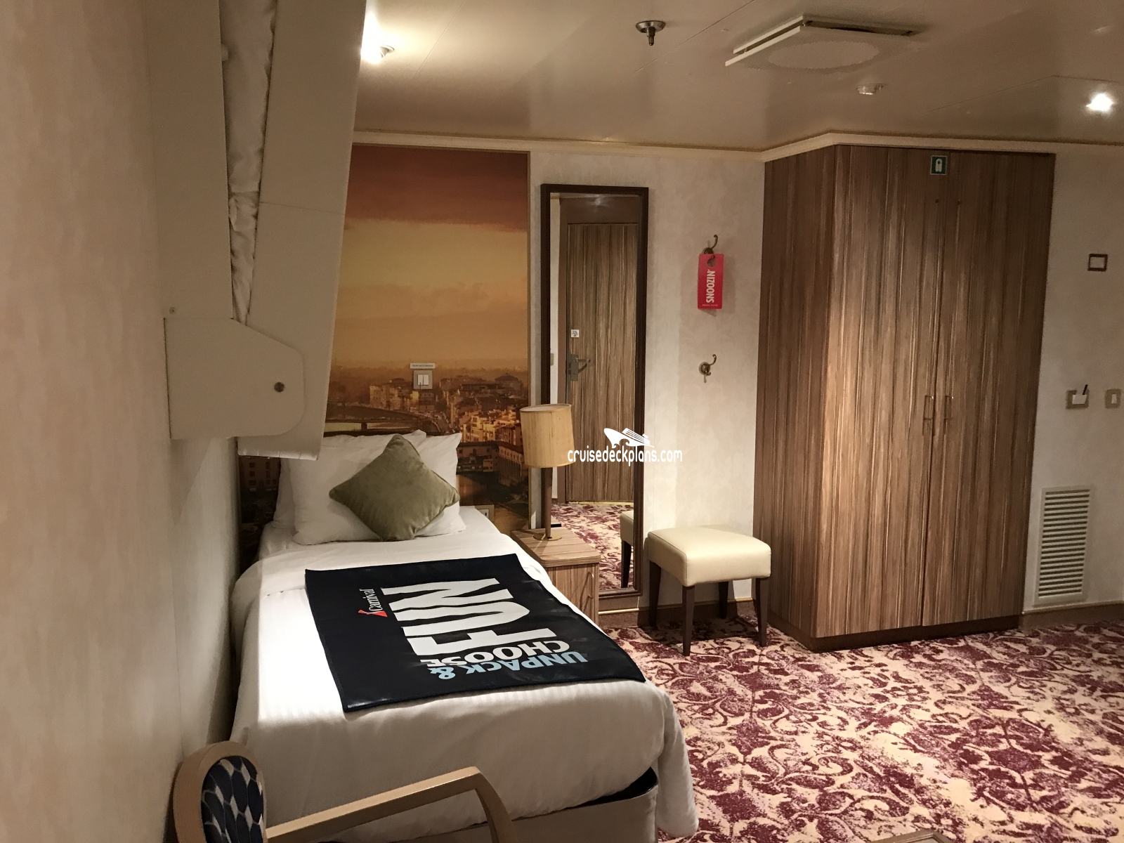 Carnival Firenze Small Interior cabin location, stateroom cabin videos, stateroom cabin pictures, floor plans, diagrams, stateroom features and perks. Cruisedeckplans.com also provides links to actual stateroom cabin pictures and videos on this page. You can see details and floor plans for all of Carnival Firenze's different stateroom cabin categories on the NEW cabins page.