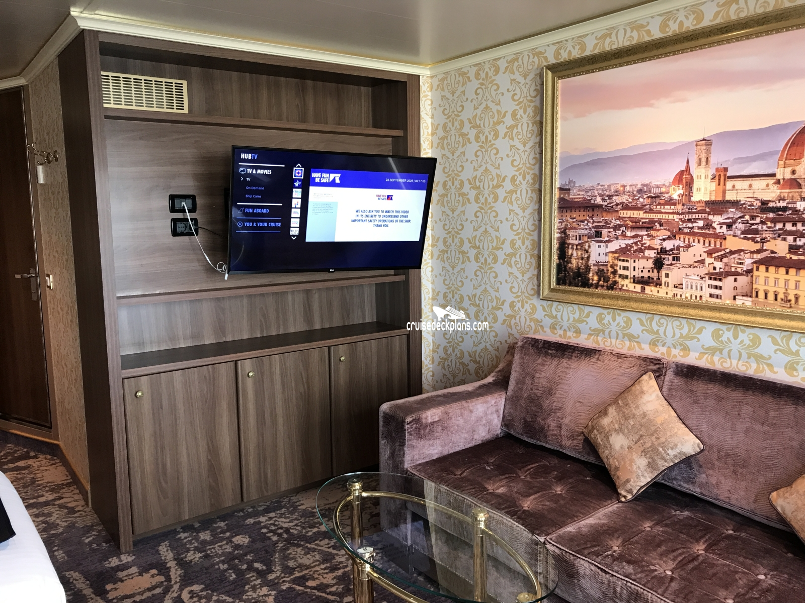 Carnival Firenze Ocean Suite cabin location, stateroom cabin videos, stateroom cabin pictures, floor plans, diagrams, stateroom features and perks. Cruisedeckplans.com also provides links to actual stateroom cabin pictures and videos on this page. You can see details and floor plans for all of Carnival Firenze's different stateroom cabin categories on the NEW cabins page.